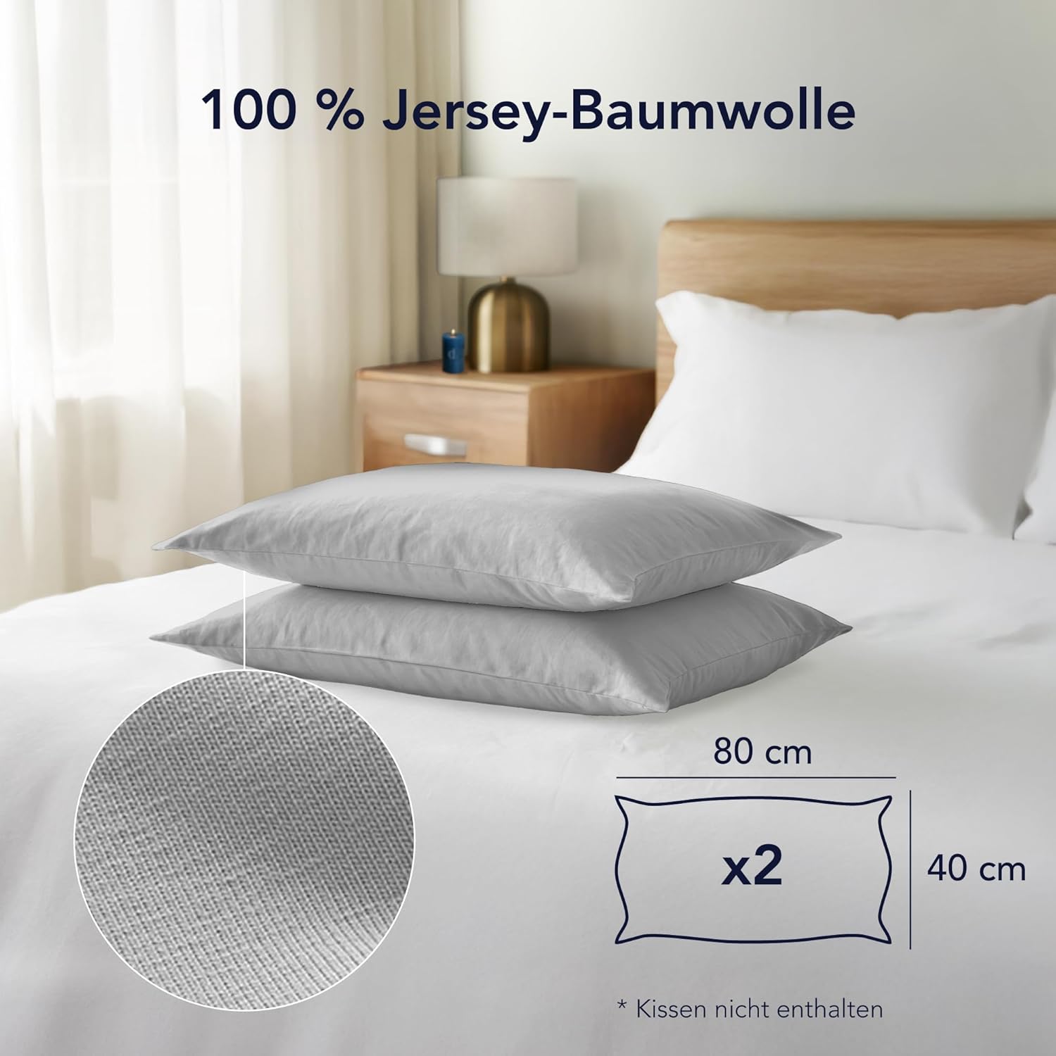 Калъфки за възглавници Dreamzie, 40 x 80 см (Комплект от 2), 100% памук Джърси, 150 г/м², Сиви, Устойчиви и хипоалергенни