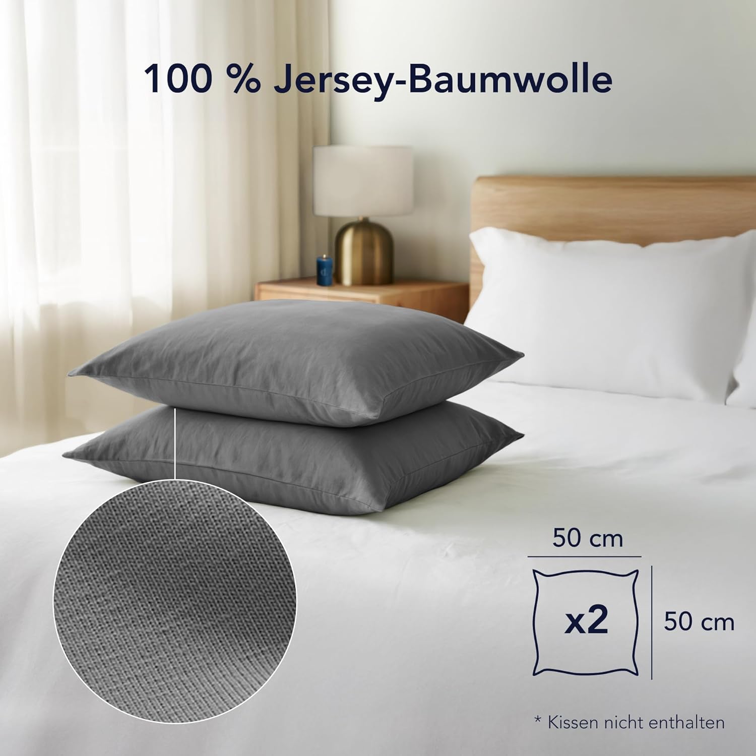 Калъфки за възглавници Dreamzie, 50 x 50 см (Комплект от 2), 100% памук Джърси, 150 г/м², Антрацит, Устойчиви и хипоалергенни