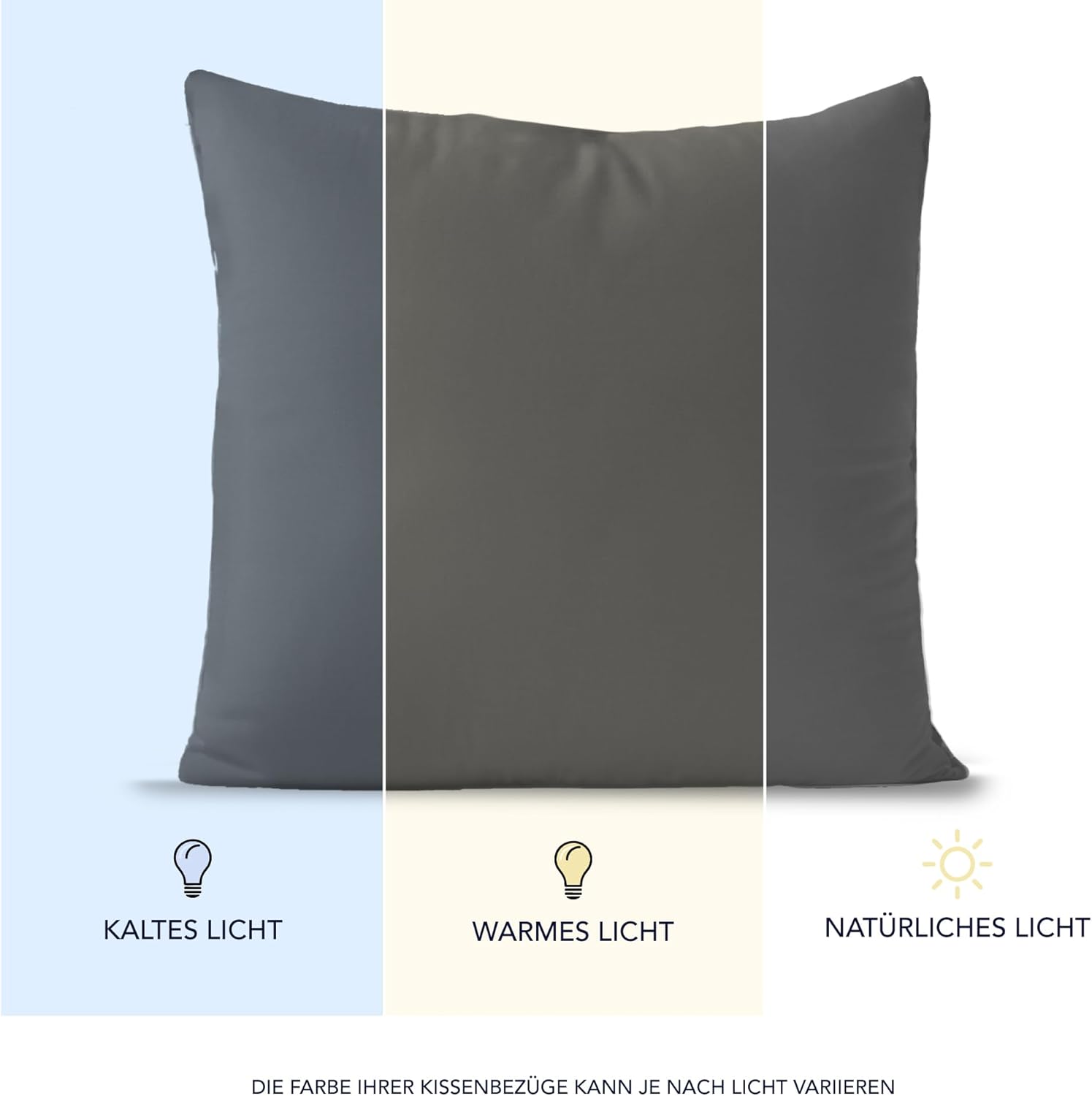 • Дизайн и лесна грижа – естествената елегантност на памука в комбинация с неговата простота позволява на тази калъфка за възглавница с размери 40 x 80 см да се впише перфектно във всяка спалня. Вечните комплекти се предлагат в 6 цвята (бяло, черно, сиво, антрацит, бежово, синьо, червено, тъмносиньо) и се вписват идеално и в декоративната всекидневна. Калъфките за възглавници се перет лесно: в пералня на 60°C.