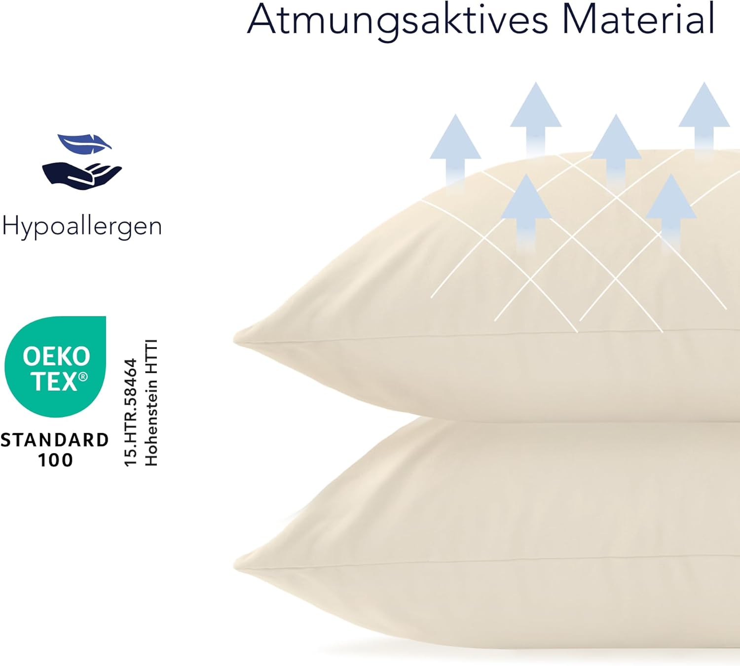 Калъфки за възглавници Dreamzie, 50 x 80 см (Комплект от 2), 100% памук Джърси, 150 г/м², бежови, устойчиви и хипоалергенни