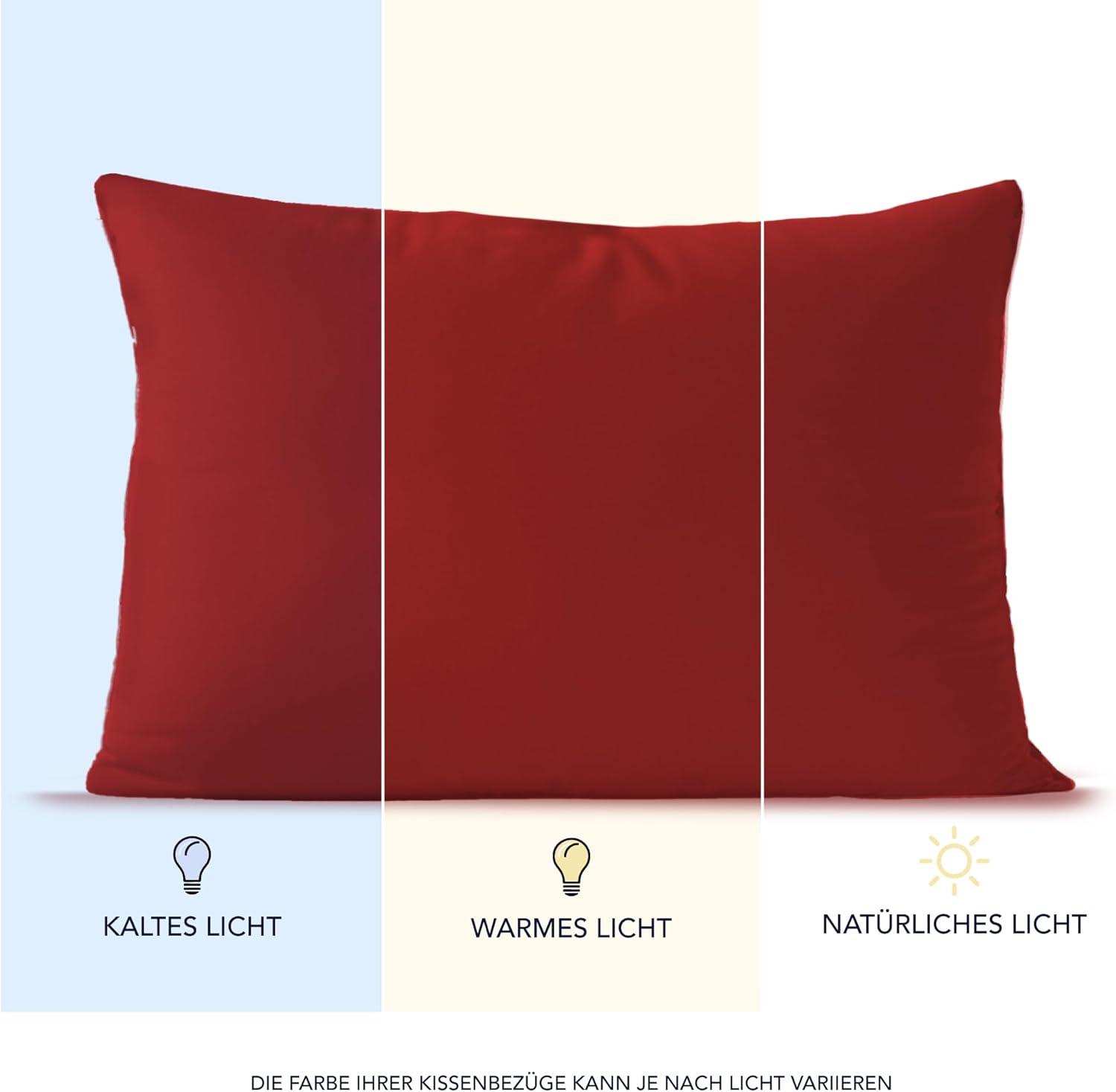 Калъфки за възглавници Dreamzie, 50 x 80 см (Комплект от 2), 100% памук Джърси, 150 г/м², Червени, Устойчиви и хипоалергенни