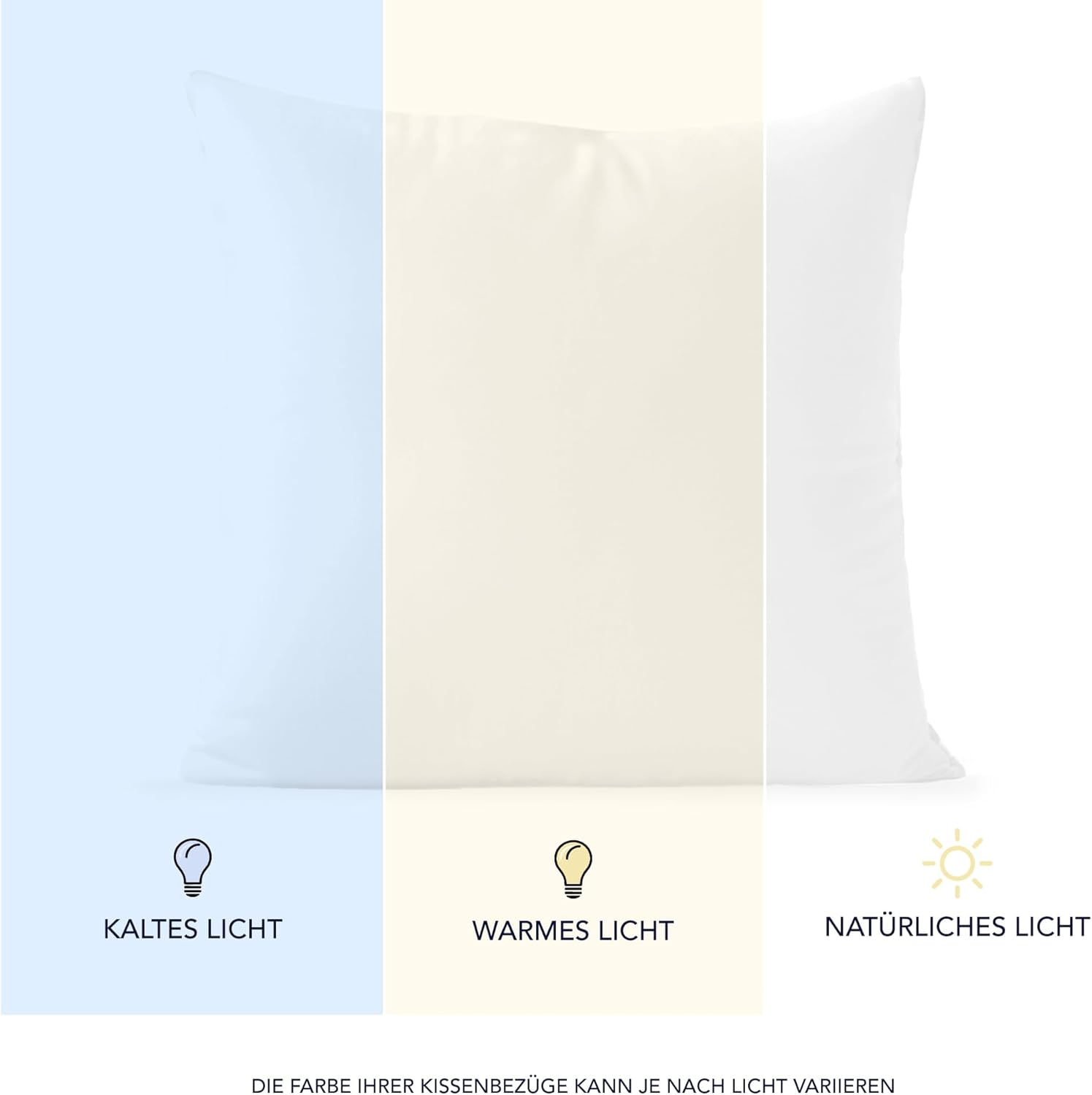 • Дизайн и лесна грижа – естествената елегантност на памука в комбинация с неговата простота позволява на тази калъфка за възглавница с размери 40 x 80 см да се впише перфектно във всяка спалня. Вечните комплекти се предлагат в 6 цвята (бяло, черно, сиво, антрацит, бежово, синьо, червено, тъмносиньо) и се вписват идеално и в декоративната всекидневна. Калъфките за възглавници се перет лесно: в пералня на 60°C.