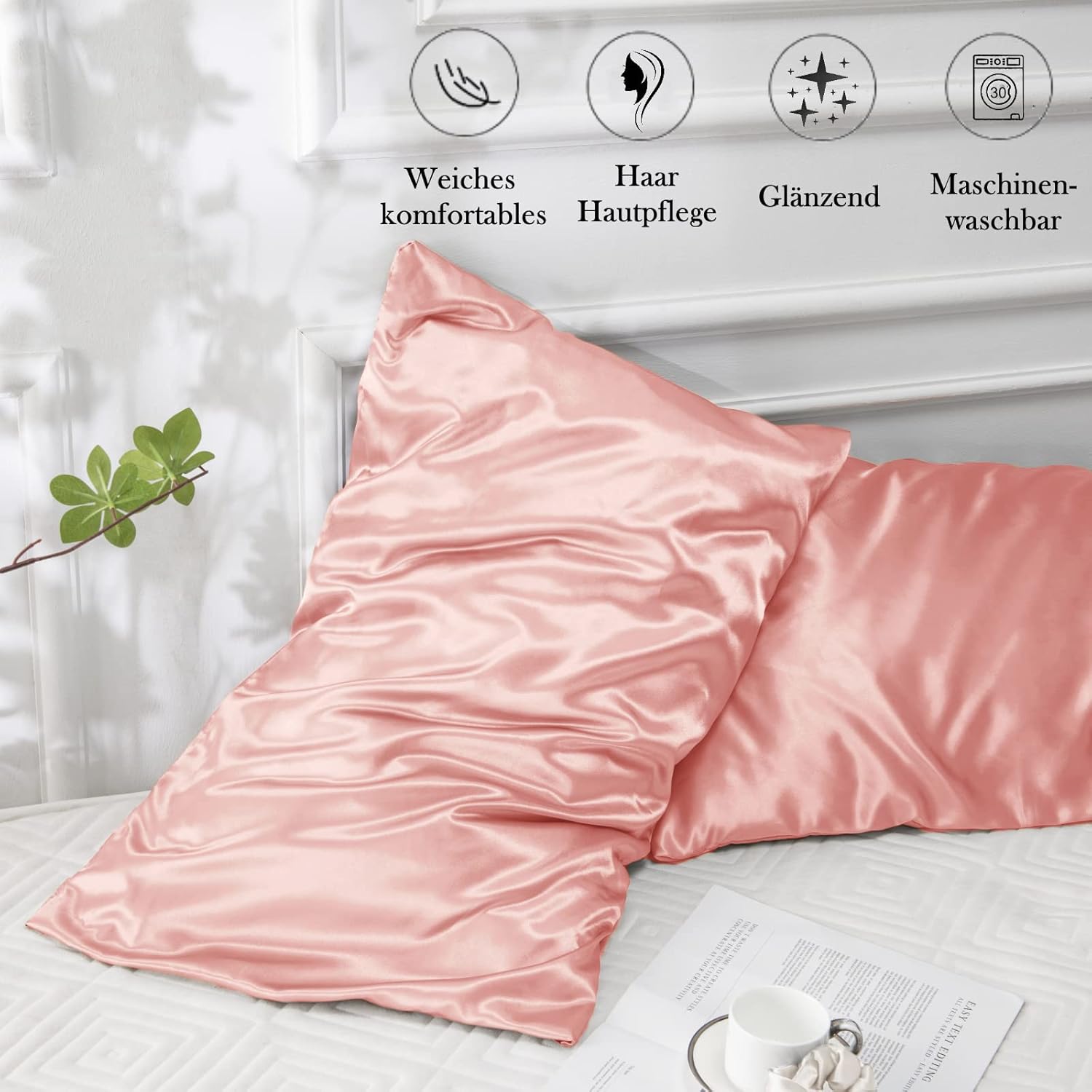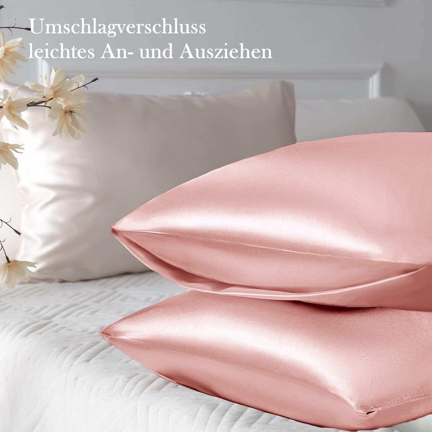 Калъфки за възглавници Vielit от сатен, комплект от 2, 40 x 60 см, розови, меки като коприна, лесни за поддръжка, за коса и кожа, в комплект с 2 ластика за коса