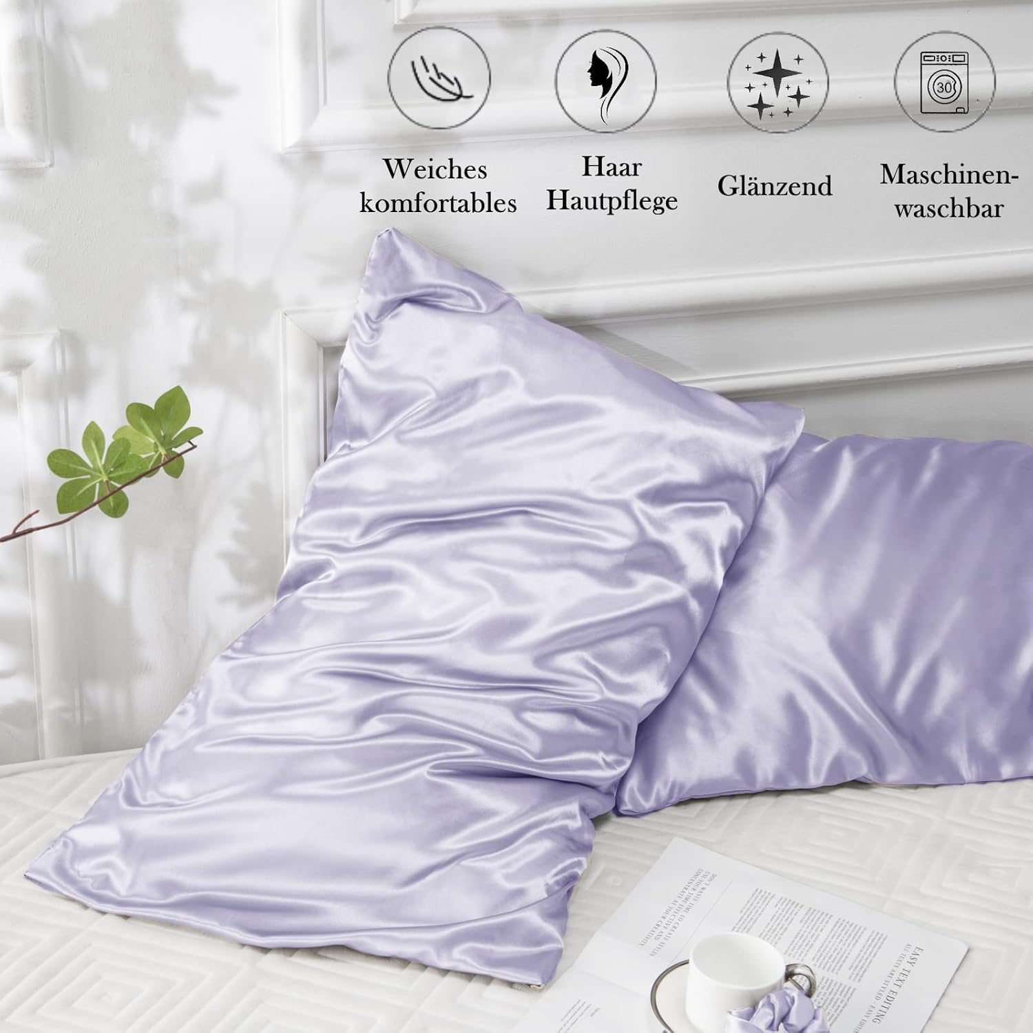 Калъфки за възглавници Vielit от сатен, комплект от 2, 50 x 70 см, лилави, меки като коприна, лесни за поддръжка, калъфка за възглавница за коса и кожа, с 2 ластика за коса