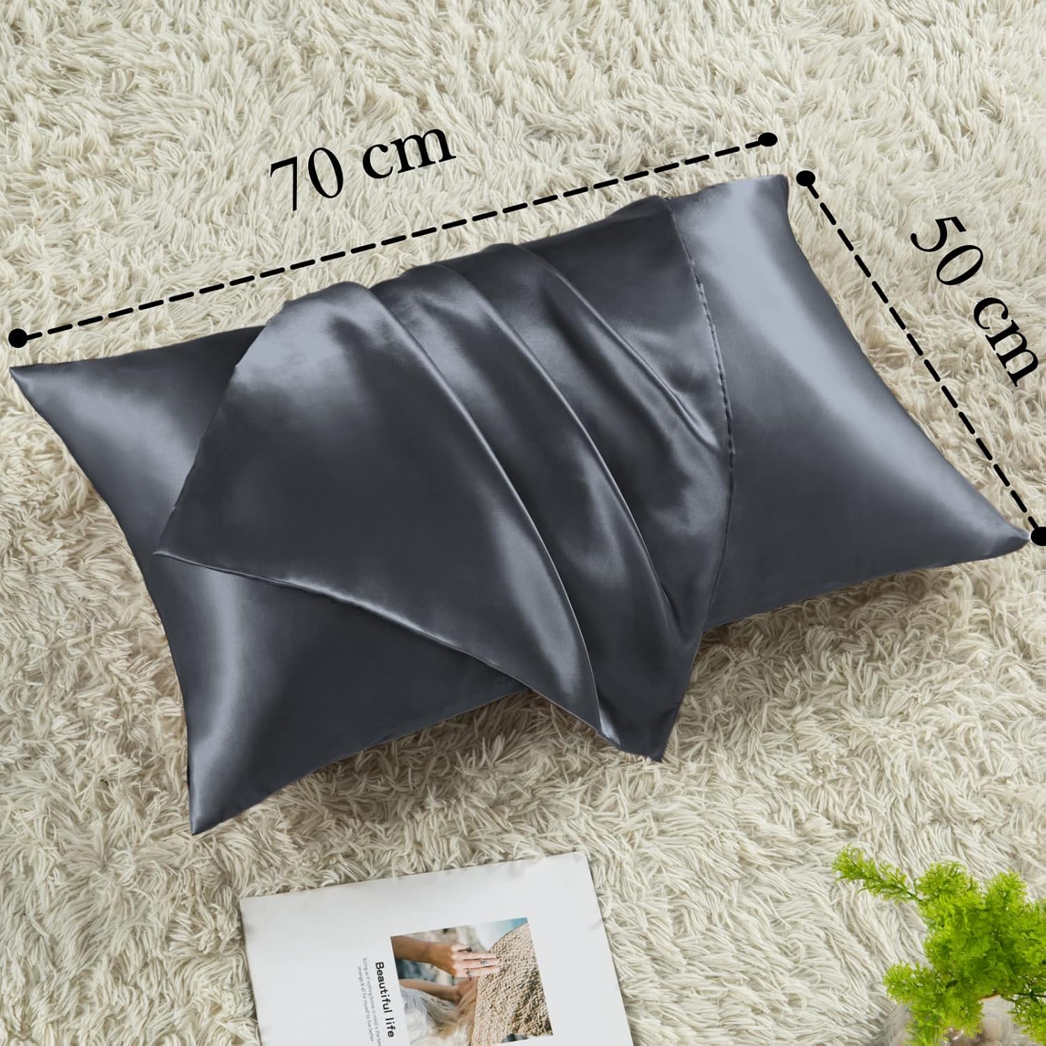 Калъфки за възглавници Vielit от сатен, комплект от 2, 50 x 70 см, тъмносиви, меки като коприна, лесни за поддръжка, калъфка за коса и кожа, с 2 ластика за коса