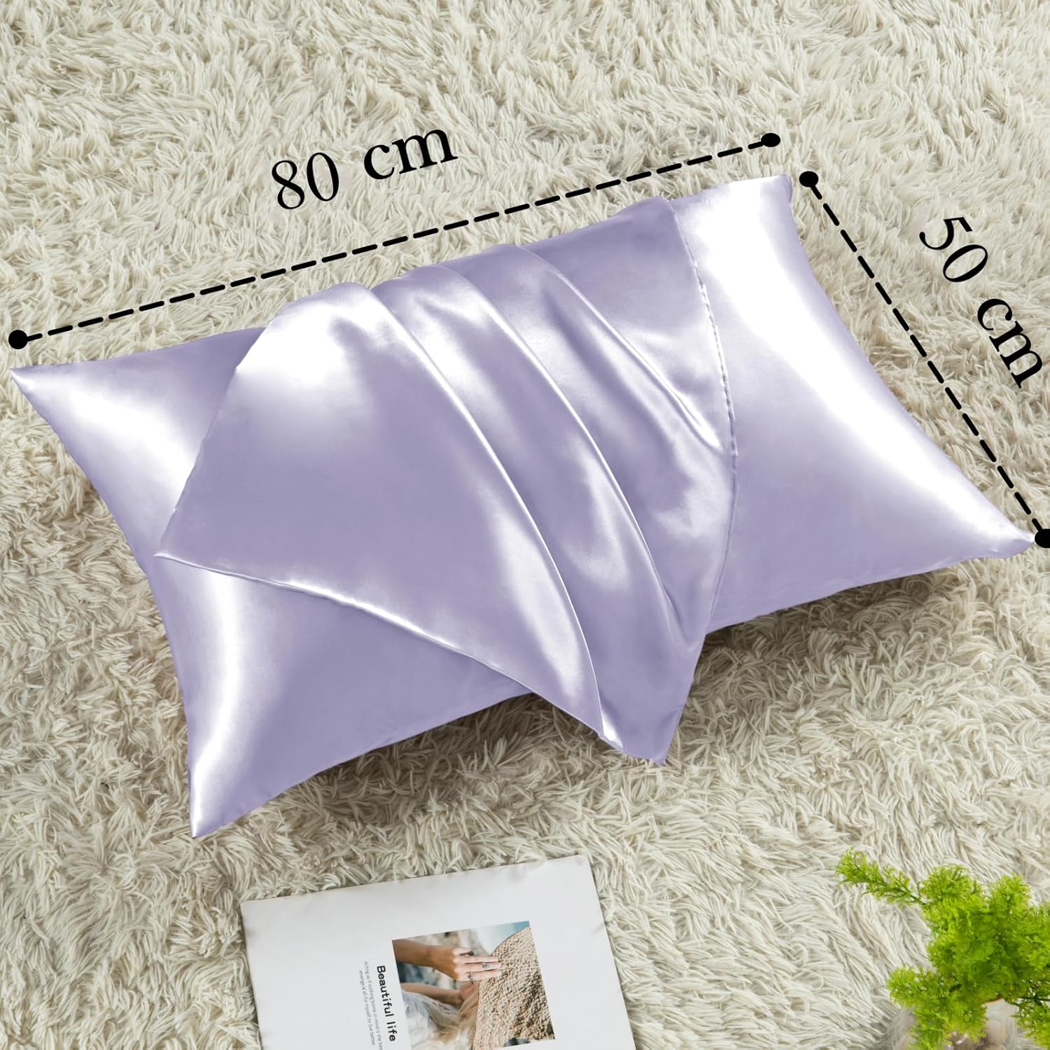 Калъфки за възглавници Vielit от сатен, комплект от 2, 50 x 80 см, лилави, меки като коприна, лесни за поддръжка, калъфка за възглавница за коса и кожа, с 2 ластика за коса