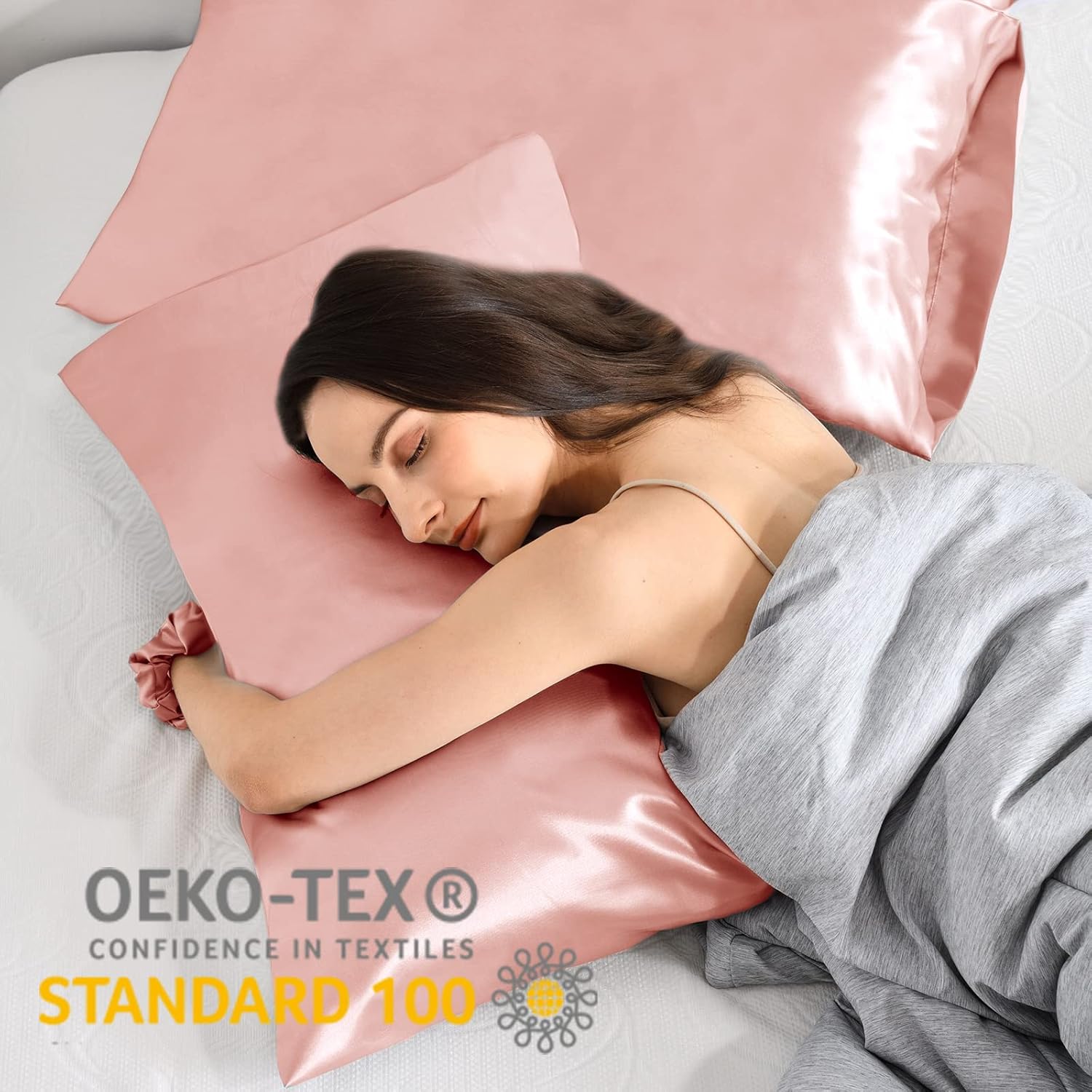 • Висококачествена сатенена калъфка за възглавница: Нашата луксозна сатенена калъфка за възглавница е изработена от първокласен сатен микрофибър, който е толкова еластичен и гладък, колкото копринената. Гарантираме най-високо качество и устойчивост, както и че нашата сатенена калъфка за възглавница е сертифицирана по Oeko-Tex, не съдържа вредни химикали и е по-добра за околната среда.