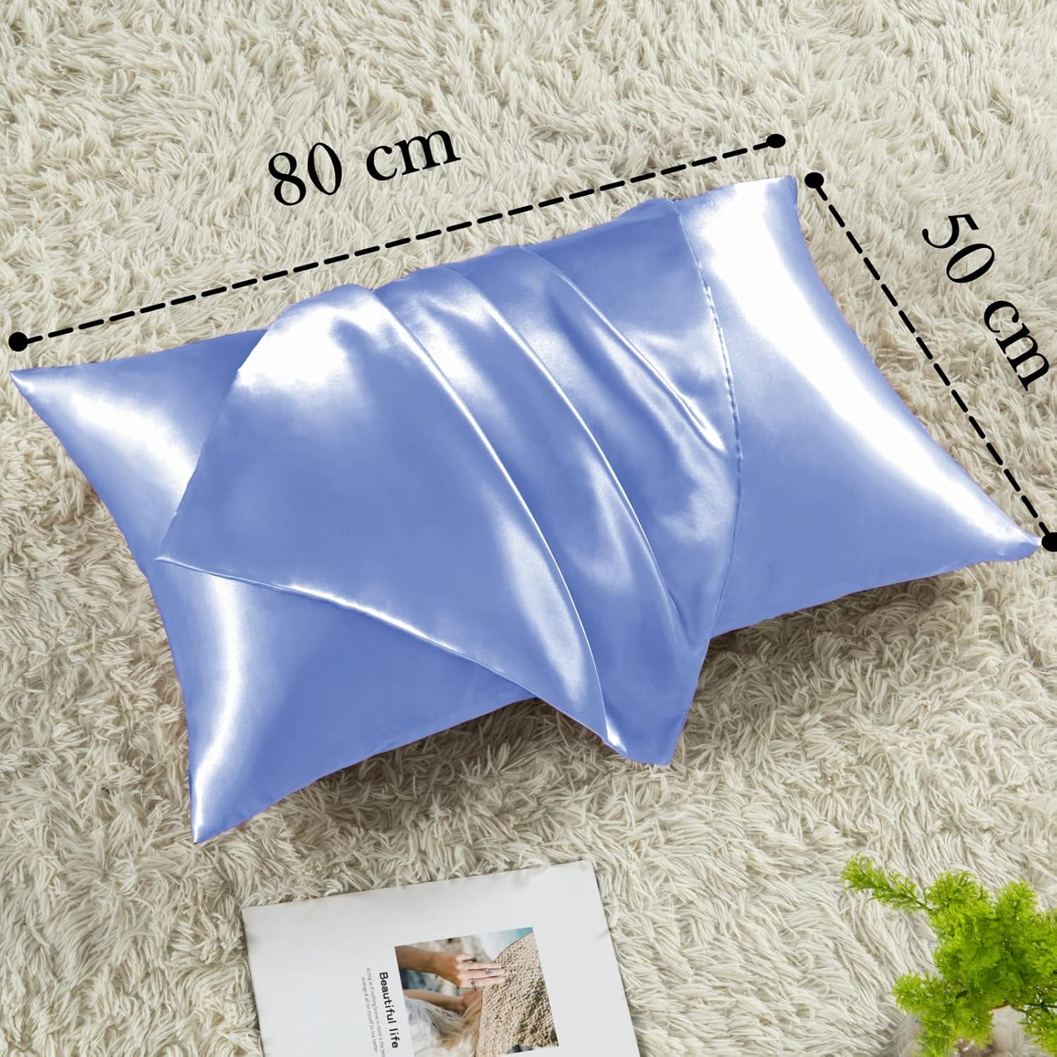 Калъфки за възглавници Vielit от сатен, комплект от 2, 50 x 80 см, сини, меки като коприна, лесни за поддръжка, калъфка за коса и кожа, с 2 ластика за коса