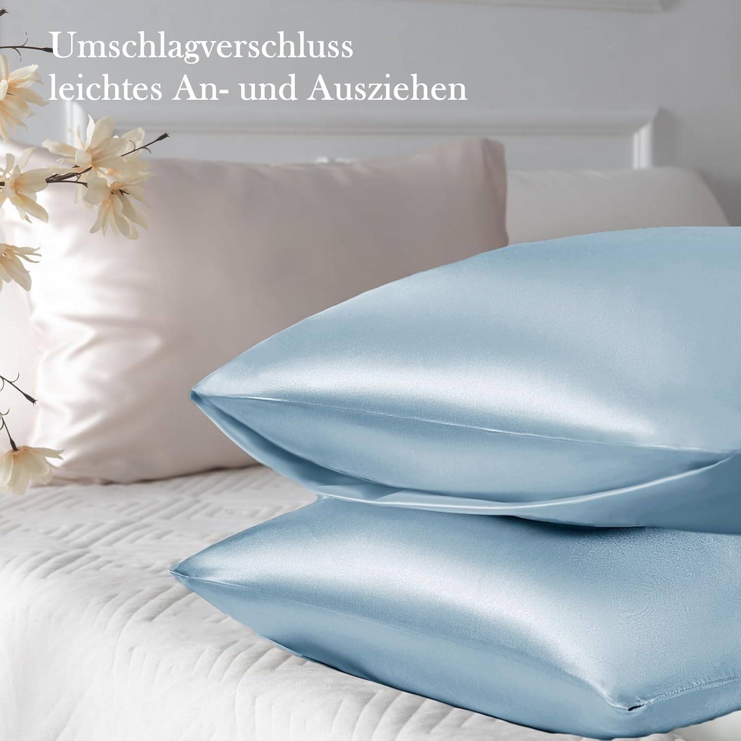 Калъфки за възглавници Vielit от сатен, комплект от 2, 50 x 80 см, светлосини, меки като коприна, лесни за поддръжка, калъфка за коса и кожа, с 2 ластика за коса