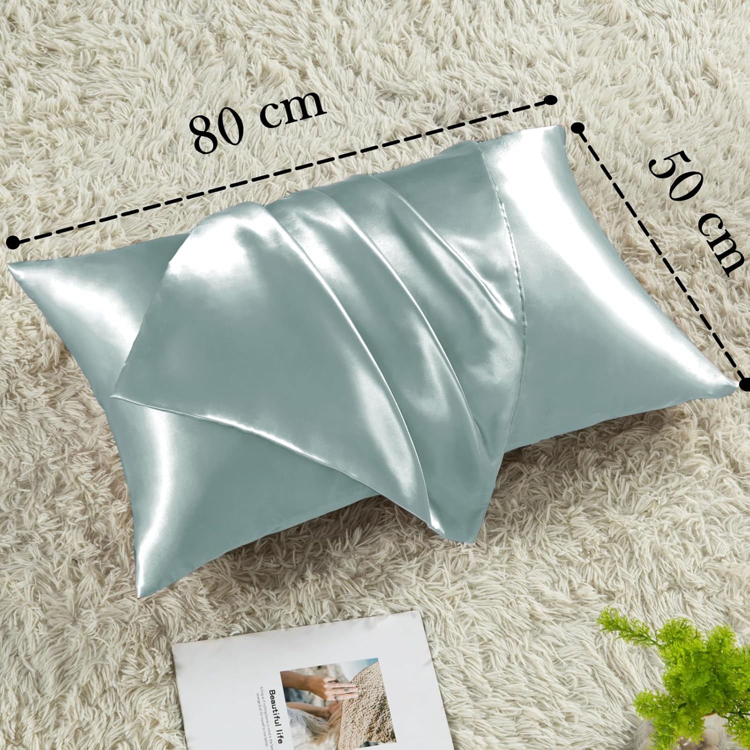 Калъфки за възглавници Vielit от сатен, комплект от 2, 50 x 80 см, зелени, меки като коприна, лесни за поддръжка, калъфка за възглавница за коса и кожа, с 2 ластика за коса