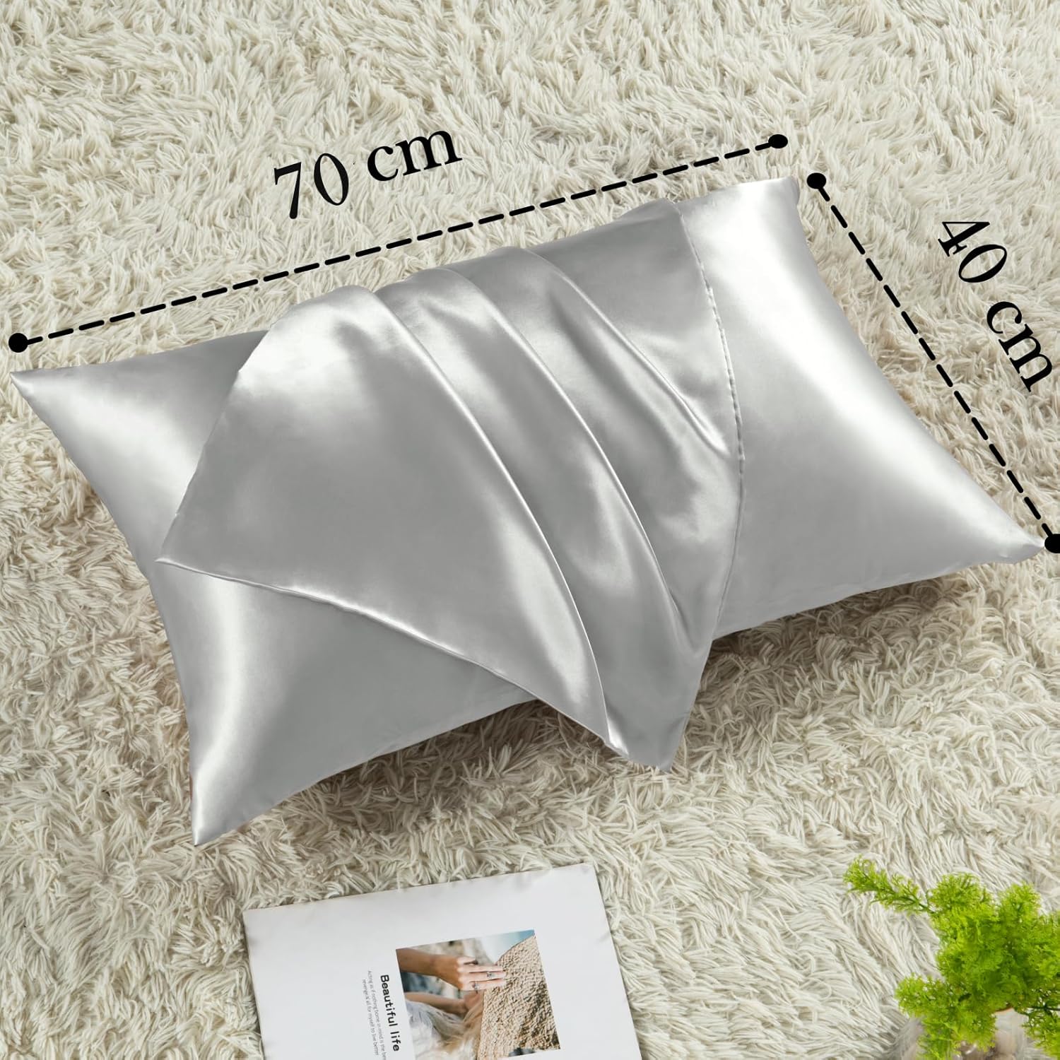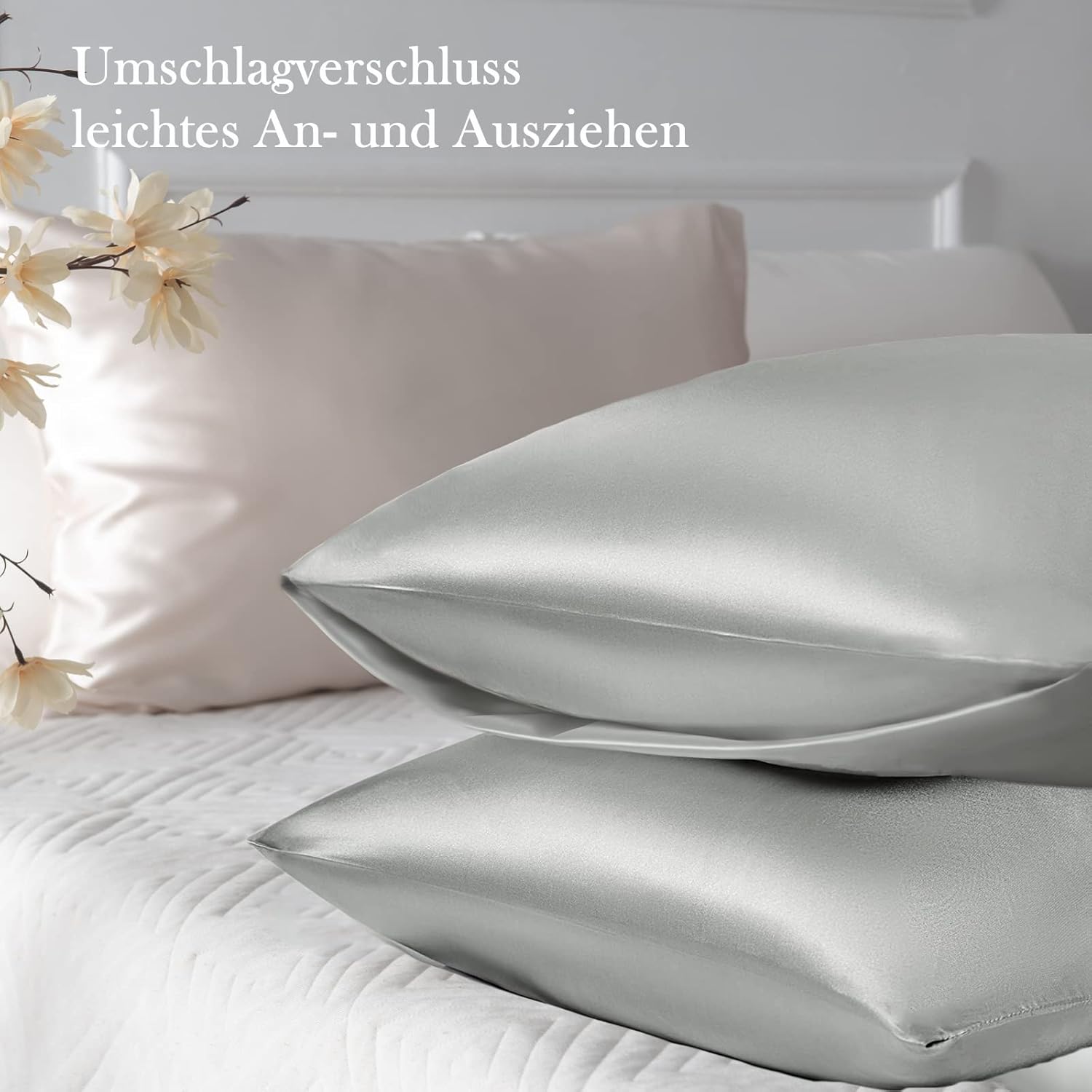 Калъфки за възглавници Vielit от сатен, комплект от 2, 70 x 40 см, сребристосиви, меки като коприна, лесни за поддръжка, за коса и кожа, в комплект с 2 ластика за коса