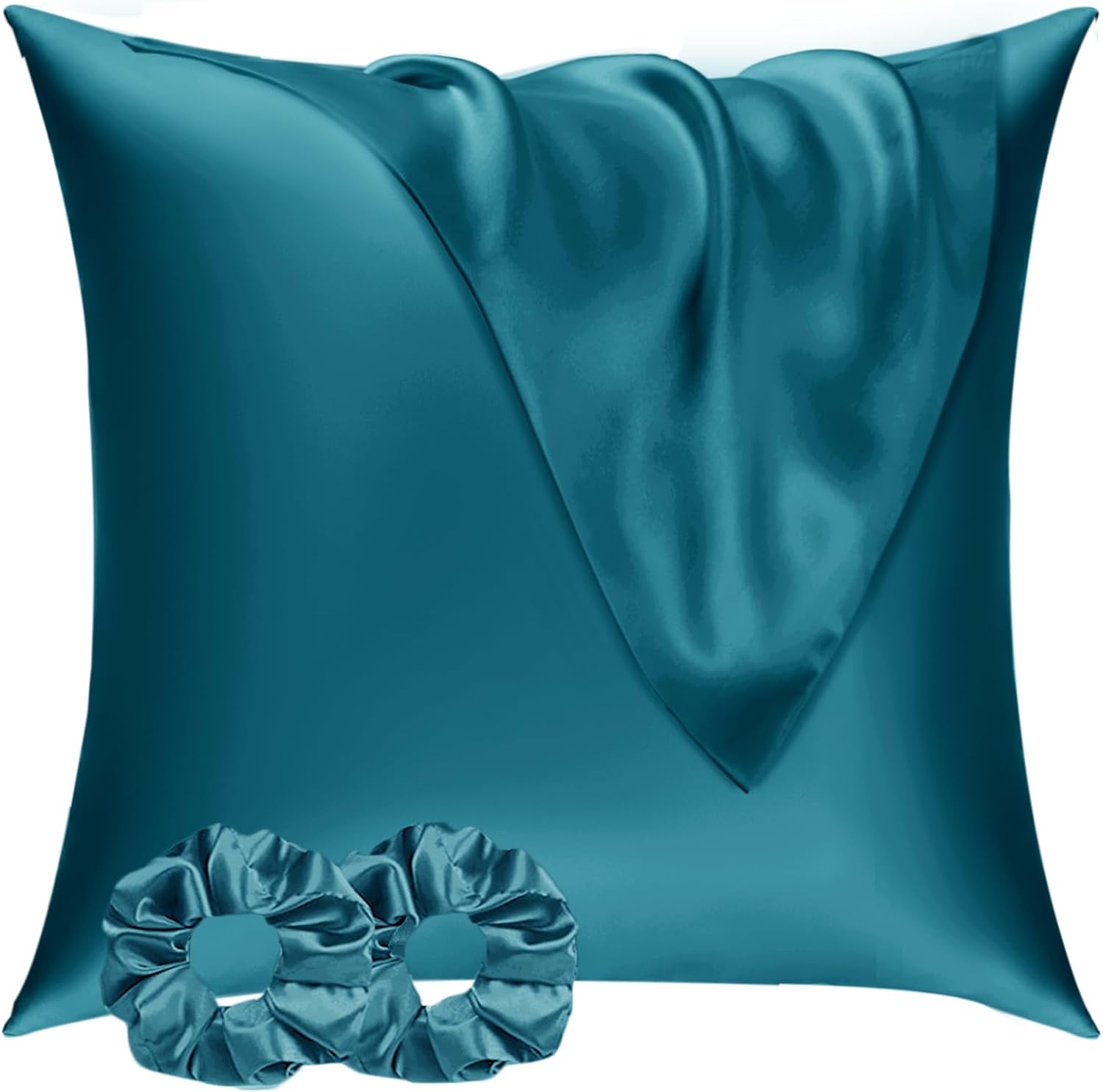 Калъфки за възглавници Vielit Saten, комплект от 2, 70 x 40 см, петролно сиви, меки като коприна, лесни за поддръжка, за коса и кожа, в комплект с 2 ластика за коса