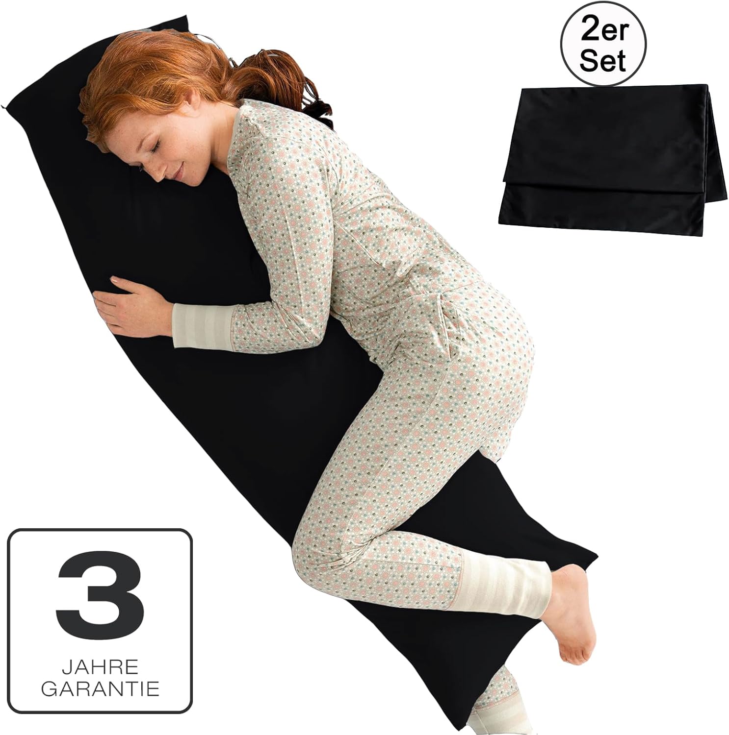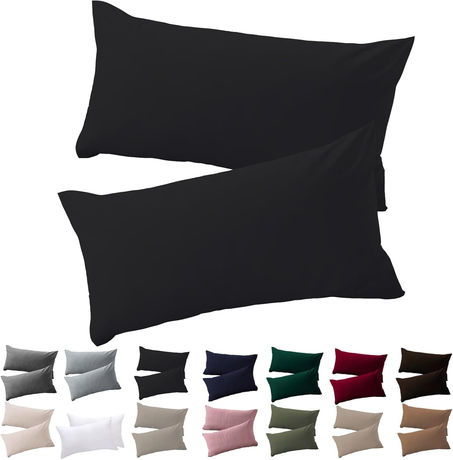 Калъфки за възглавници за спане настрани, 40 x 145 см, Комплект от 2, Черни, с цип, 100% микрофибър, Устойчиви и хипоалергенни