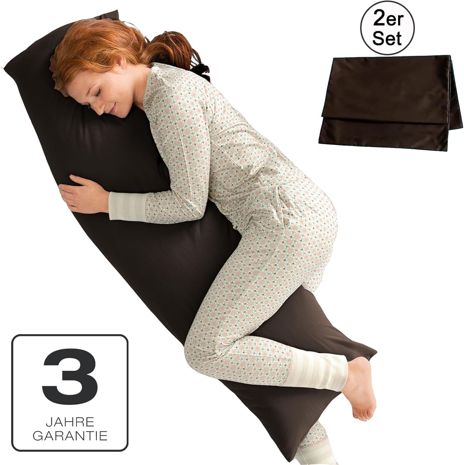 Калъфки за възглавници за спане настрани, 40 x 145 см, комплект от 2, кафяви, с цип, 100% микрофибър, устойчиви и хипоалергенни