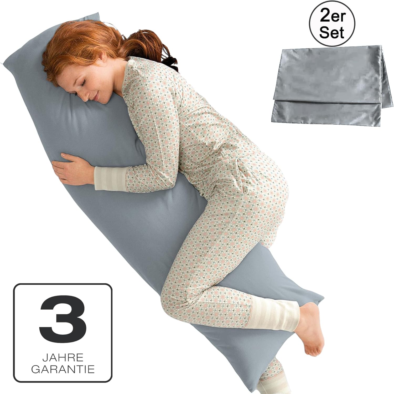 Калъфки за възглавници за спане настрани, 40 x 145 см, комплект от 2, сиви, с цип, 100% микрофибър, устойчиви и хипоалергенни