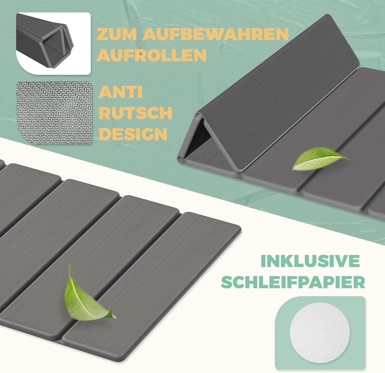 • Сгъваем и противоплъзгащ дизайн: за разлика от конвенционалните постелки за баня, тази постелка за баня е сгъваема, лесна за съхранение и не заема място. Може лесно да се постави дори в малка баня. Каменната постелка за сушене се предлага с противоплъзгаща се подложка. Не е нужно да се притеснявате, че постелката и противоплъзгащата се подложка ще се отделят една от друга. Неплъзгащата се подложка ефективно подобрява устойчивостта на хлъзгане и защитава вашата безопасност.
