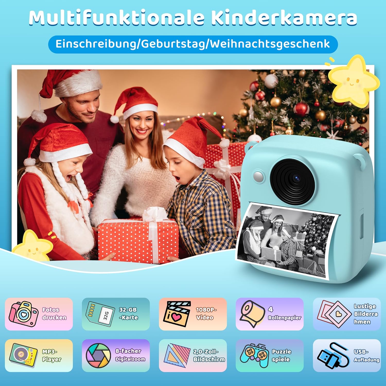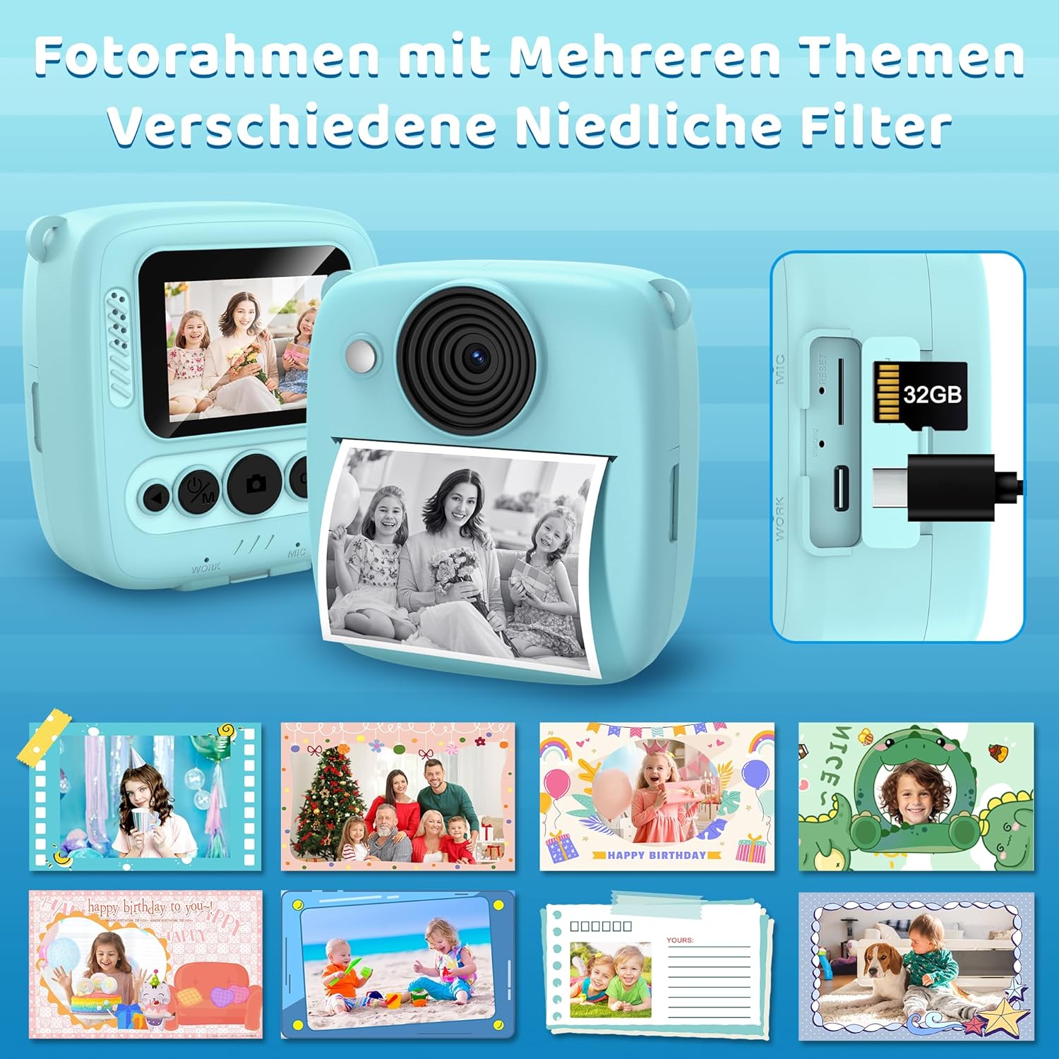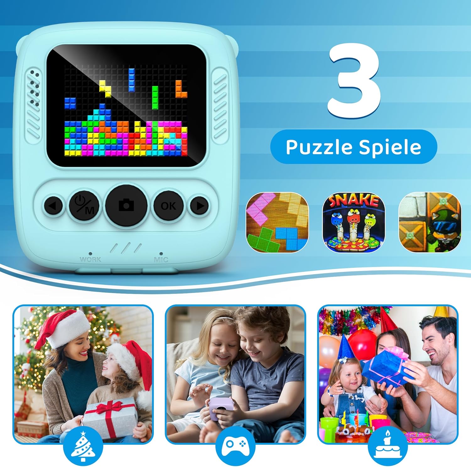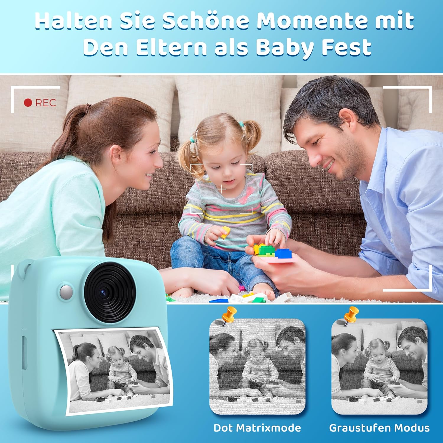• Перфектен подарък за деца: подарък за деца на възраст от 3 до 12 години, това не е обикновен детски фотоапарат. Той може да взаимодейства с децата и да ги учи да правят снимки, за да запечатат живота си. Той е и перфектният спътник за взаимодействието родител-дете! Нека децата запечатат ценни моменти от детството си. Детски фотоапарат за моментални снимки за рождени дни, Коледа, Хелоуин и Великден.