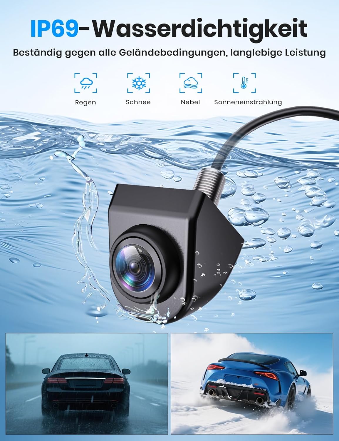 • Здрава IP69 HD камера за заден ход: Паркирайте безопасно – в града, извън града и в дъжда! Гарантирана надеждност и издръжливост. Винаги готова за употреба, независимо от предизвикателството, с което се сблъсквате.