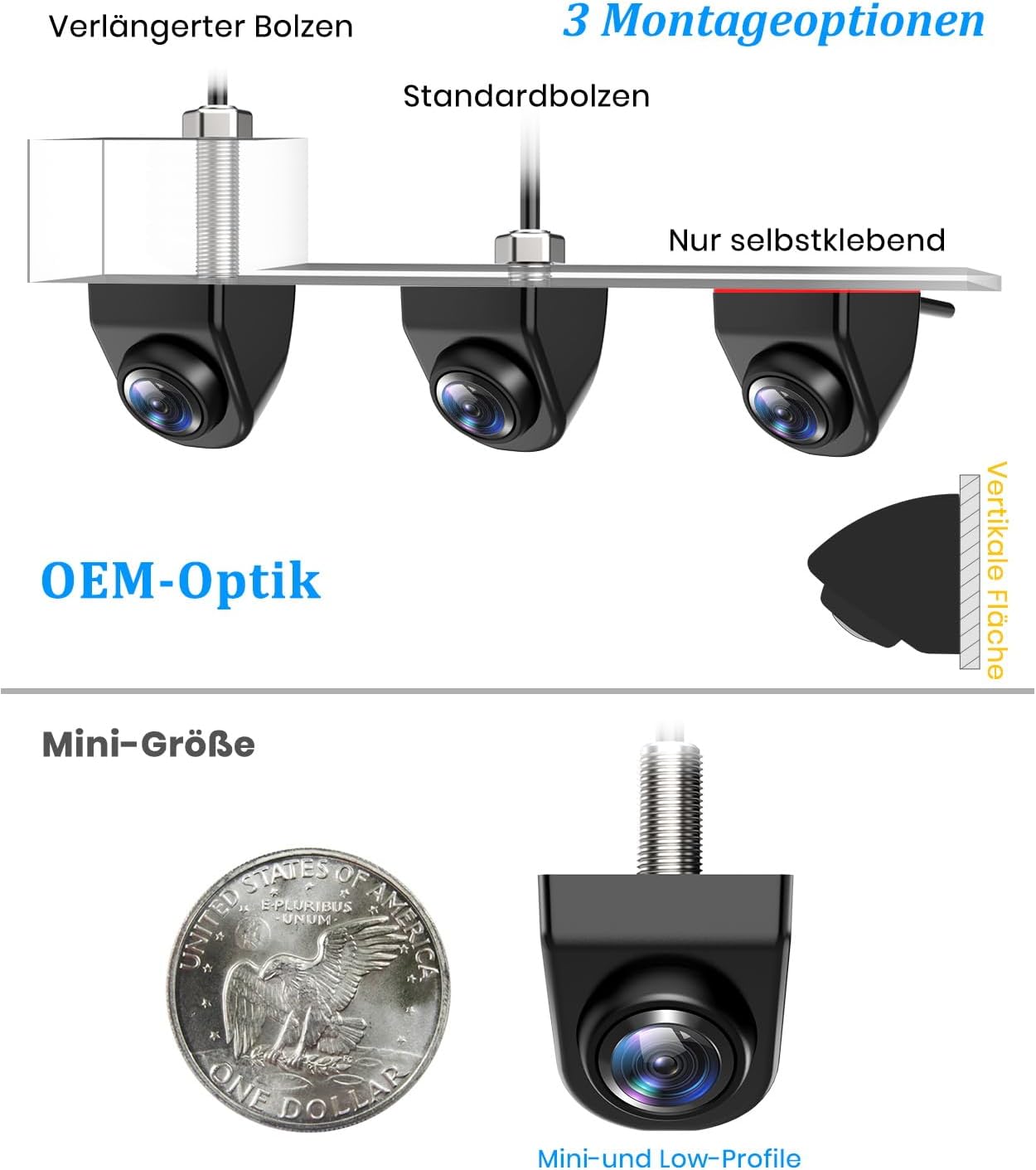• Скрит монтаж с оригинален външен вид: Благодарение на OEM дизайна, може да се монтира гъвкаво отпред, отзад или върху регистрационния номер. Подходящ за автомобили, SUV-ове и пикапи, без да се модифицира каросерията и запазвайки външния вид на автомобила.