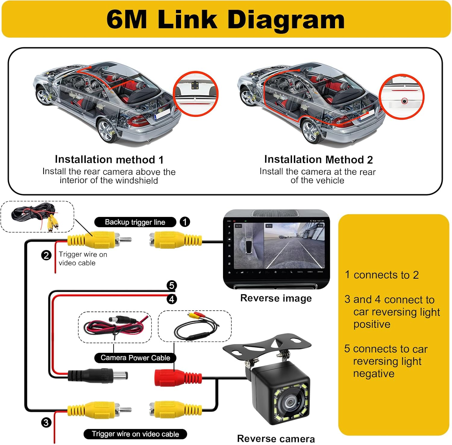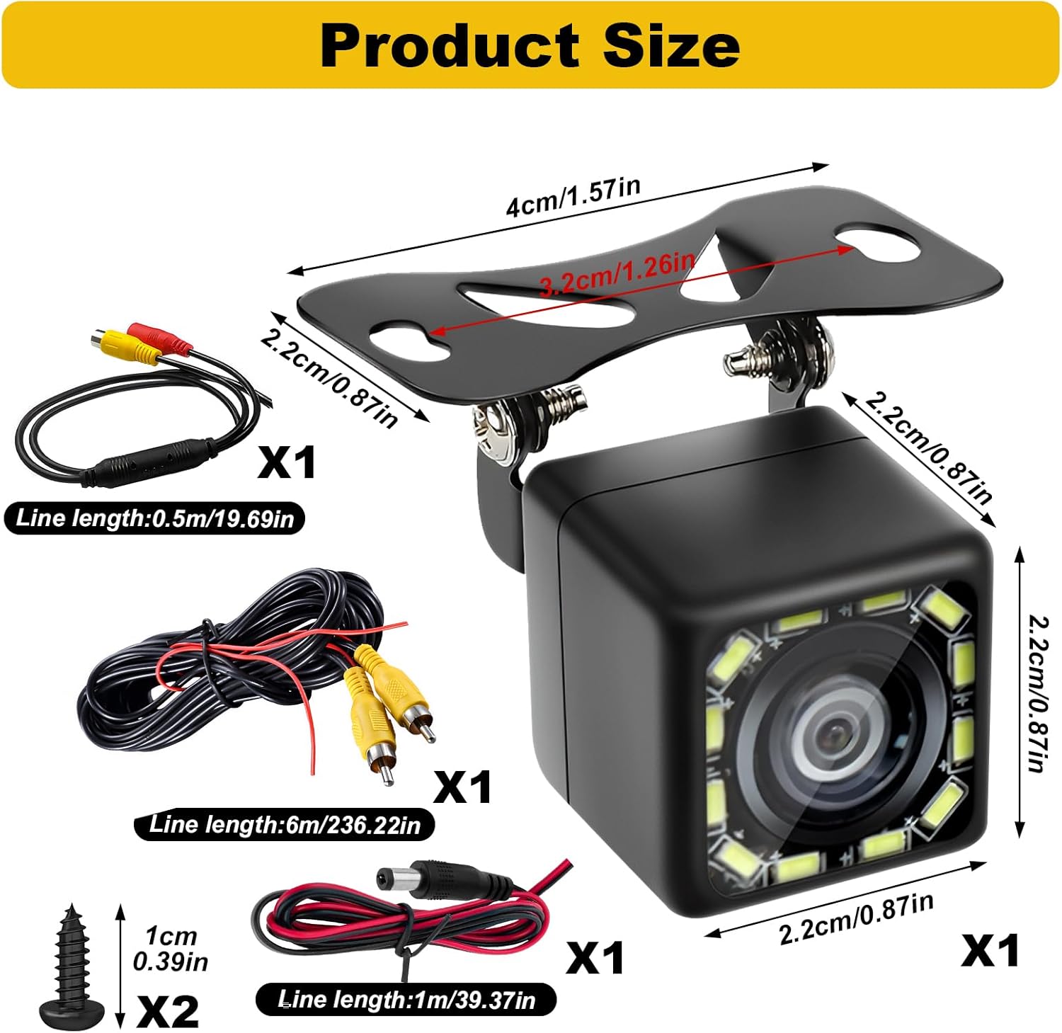 1x камера за заден ход, 1x 6-метров видео/захранващ кабел, 1x ръководство за употреба, монтажен хардуер