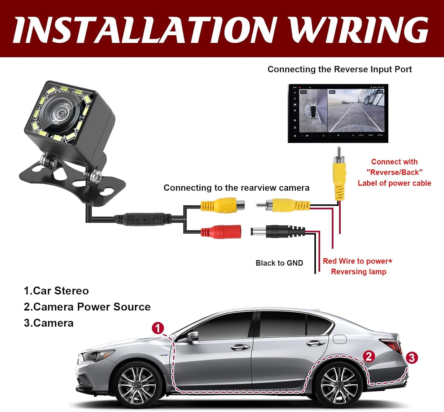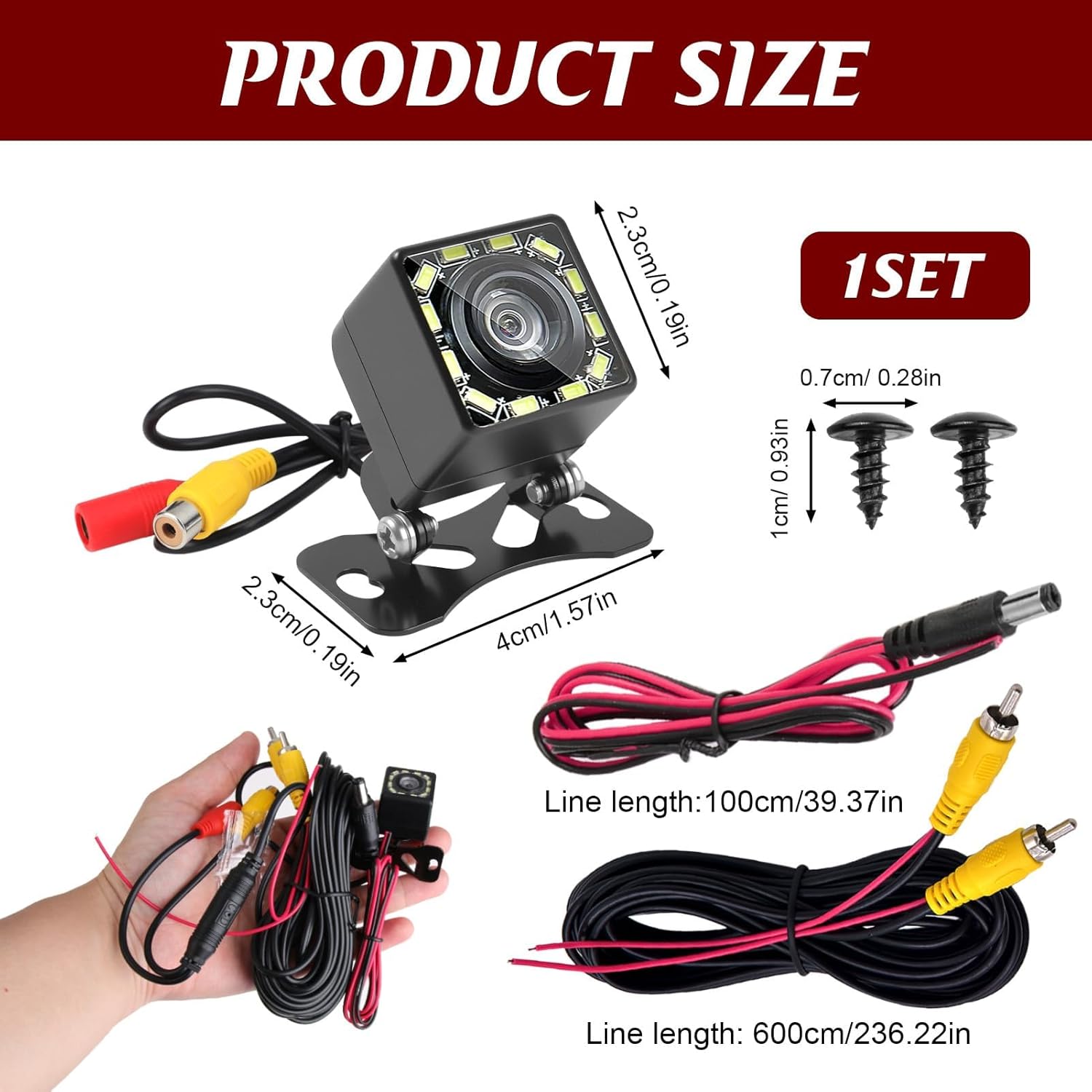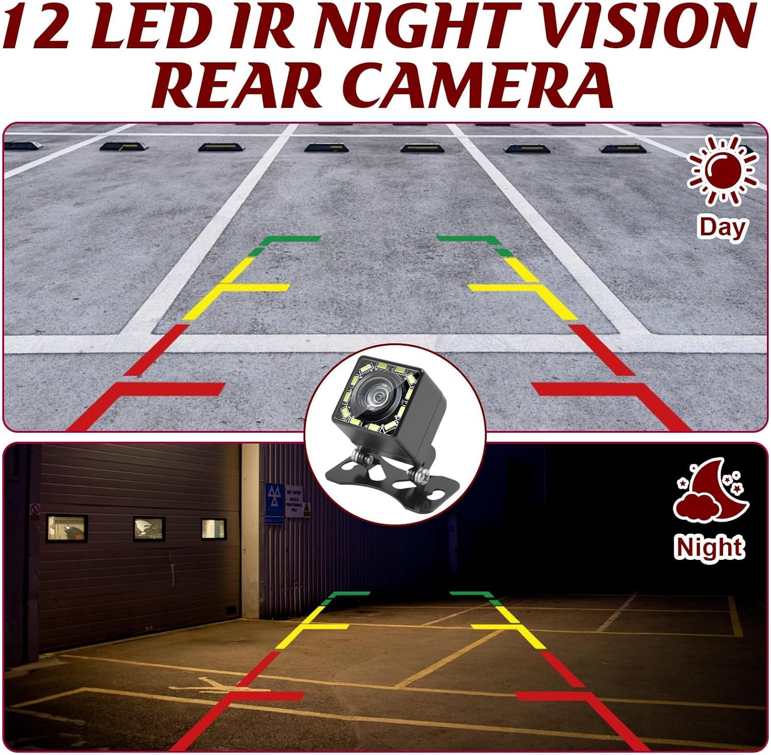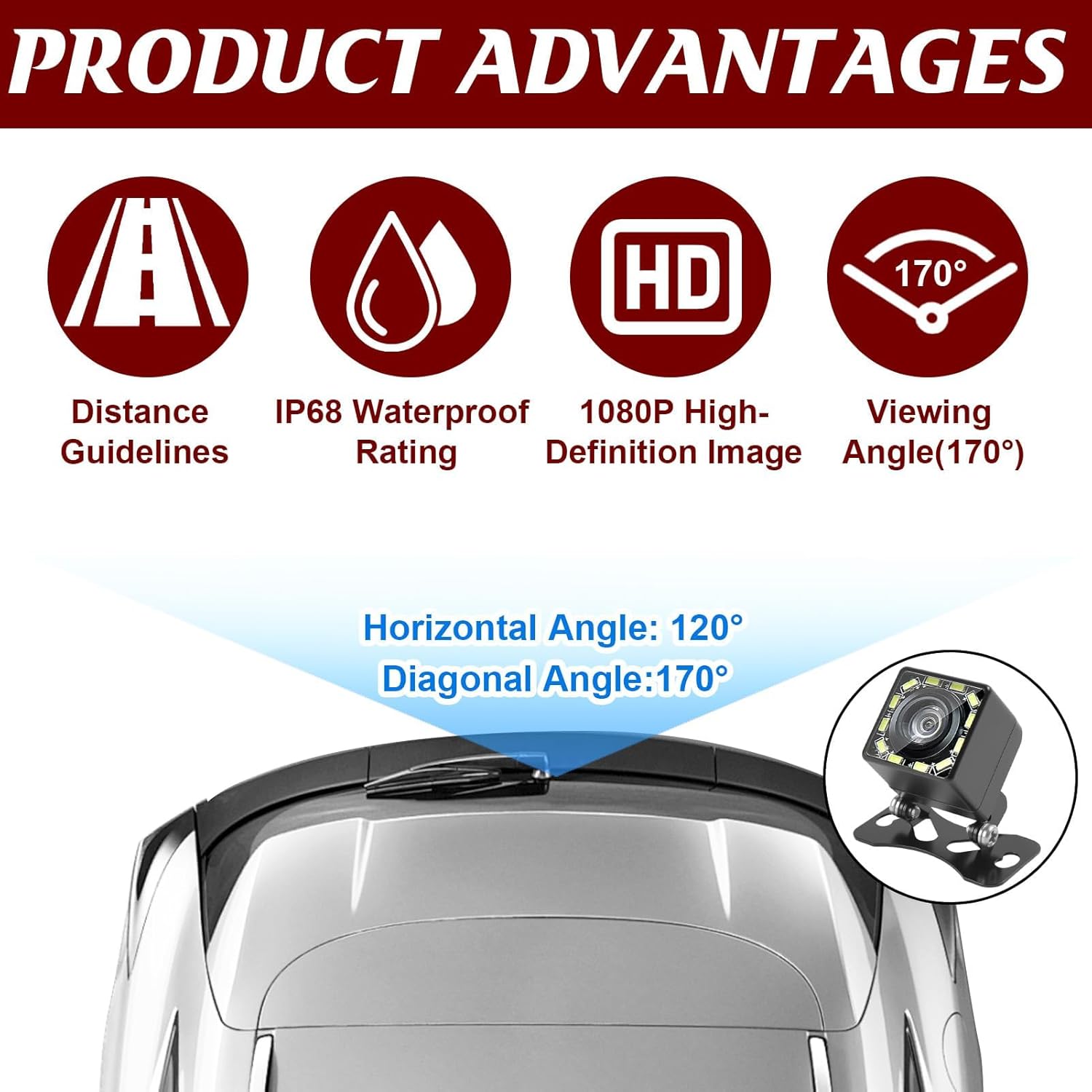 Камерата за заден ход Ultra HD 1080P предлага отлично решение за безопасно движение на заден ход. Със 170° широкоъгълен обектив тип „рибешко око“ и 12 мощни светодиода, тя осигурява ясна видимост, дори през нощта. Водоустойчивият дизайн IP68 гарантира надеждна работа при всякакви метеорологични условия, а Ultra HD резолюцията осигурява кристално ясни изображения, които значително опростяват паркирането и маневрирането.
