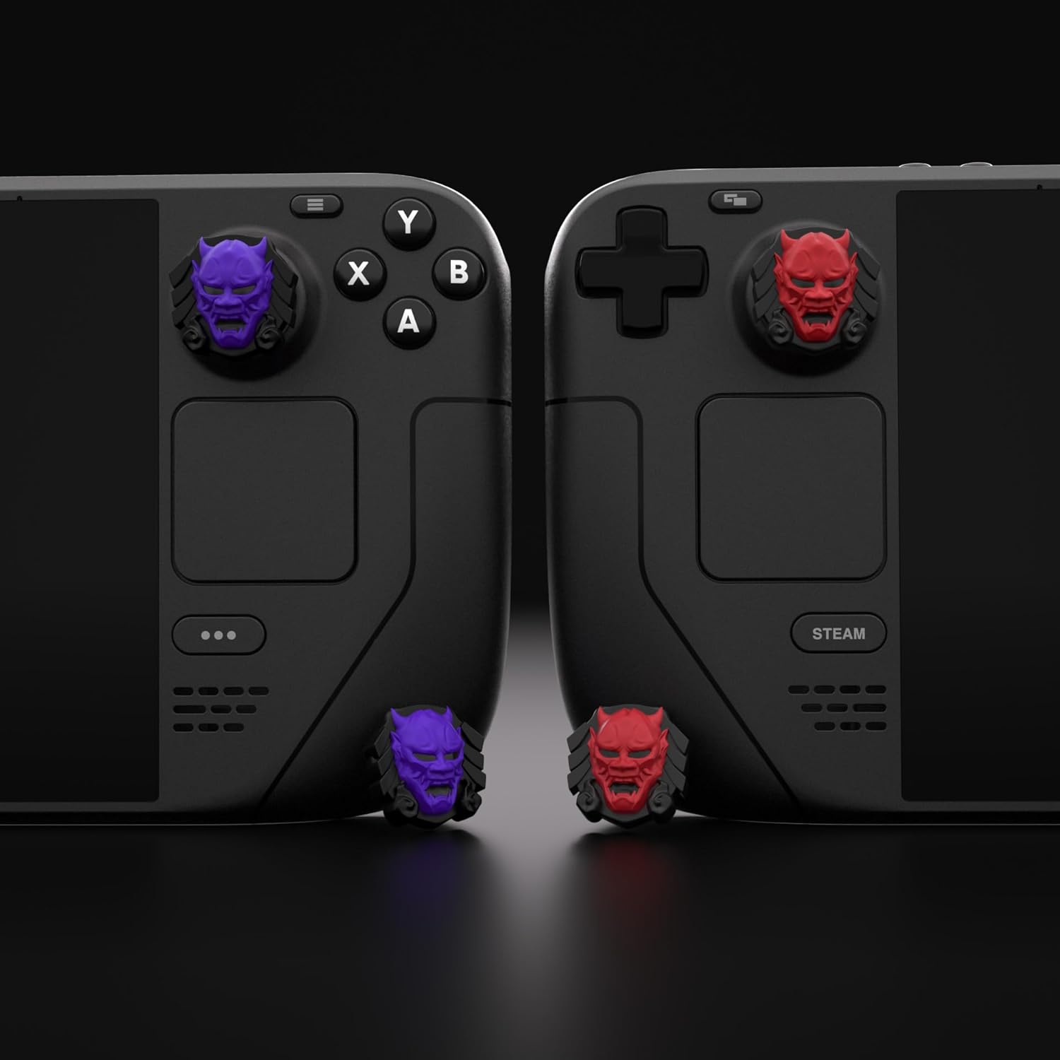 Капачки за джойстик PlayVital за LCD дисплей на Steam Deck, капачки за джойстици за PS Portal Remote Player, аксесоари за защитни капачки, капачки за аналогови джойстици за OLED контролер на Steam Deck (Oni Demons)