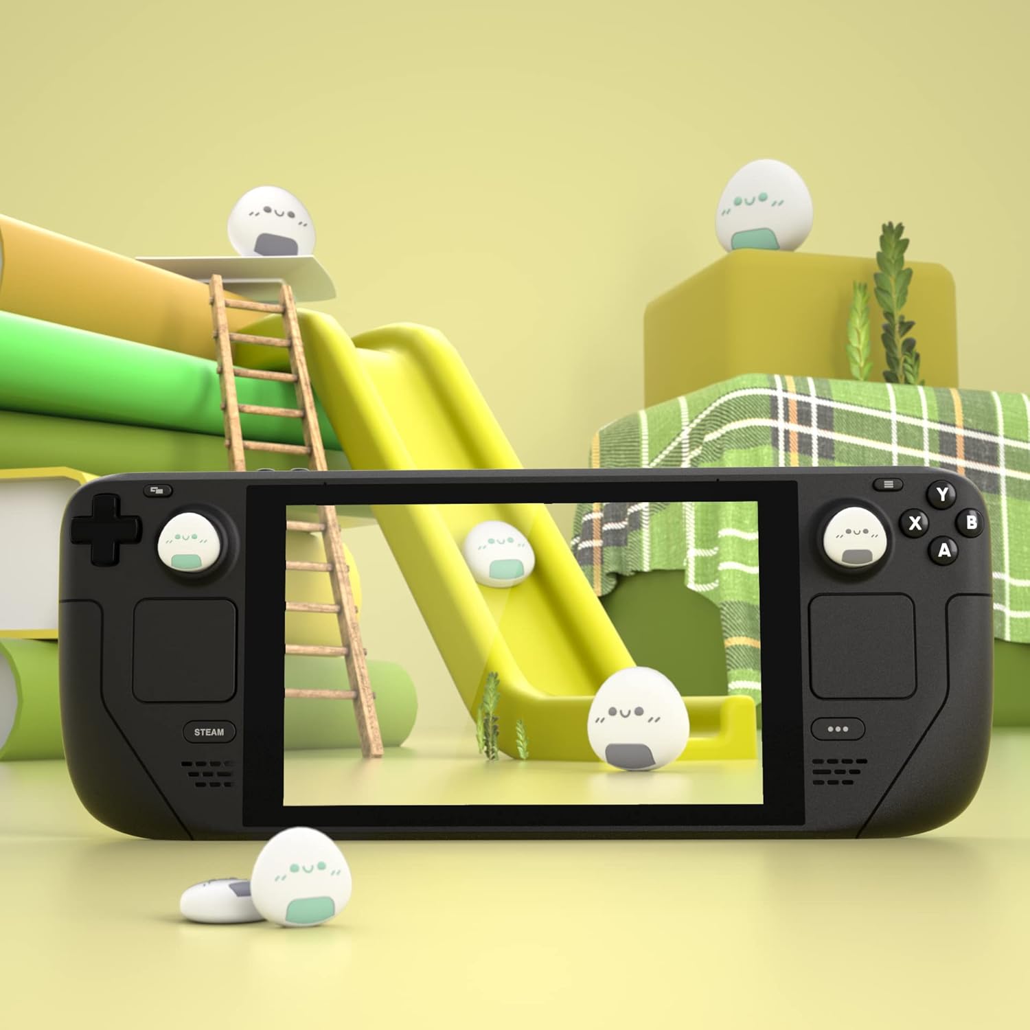 Капачки за джойстик PlayVital за LCD дисплей на Steam Deck, Капачки за джойстици за PS Portal Remote Player, Аксесоари за защитни капачки, Капачки за аналогови джойстици за OLED контролер на Steam Deck (Onigiri)
