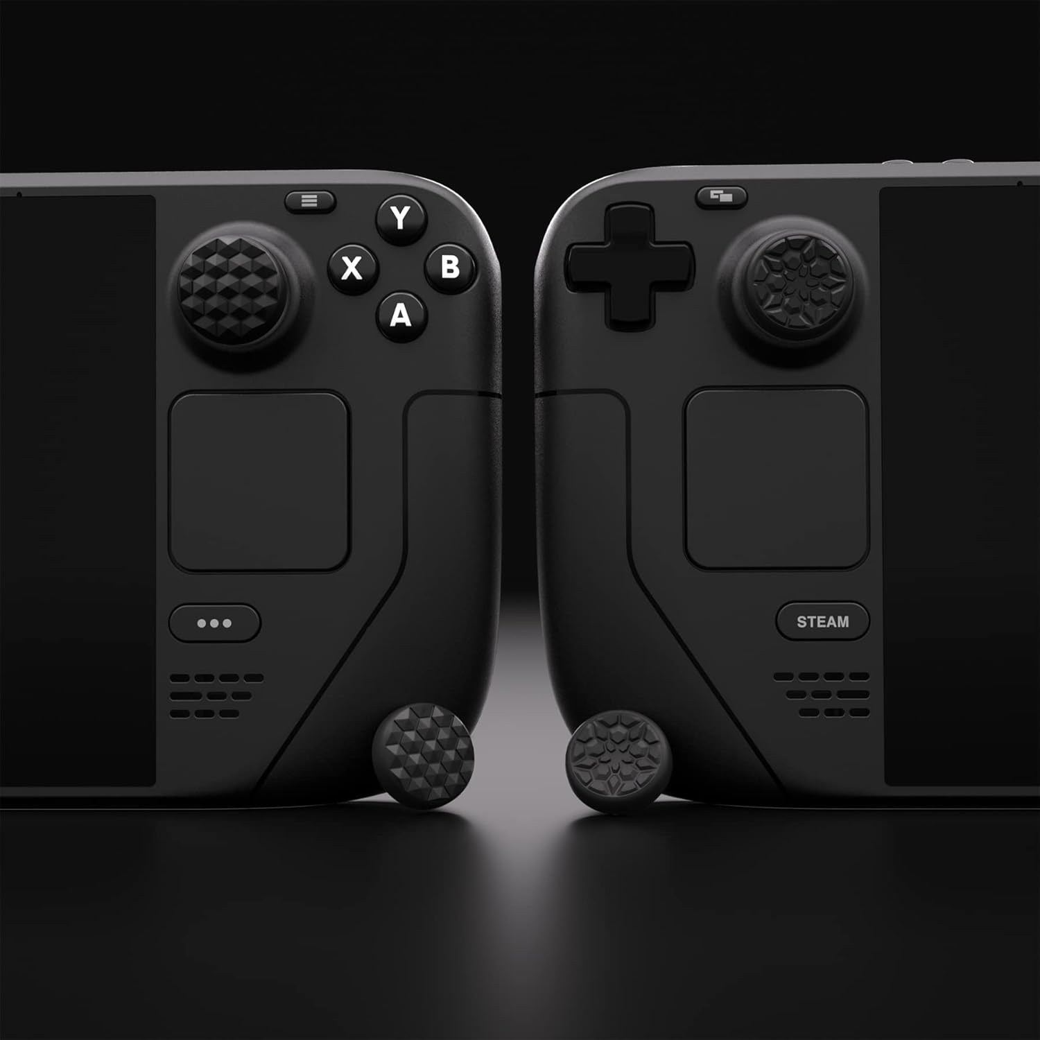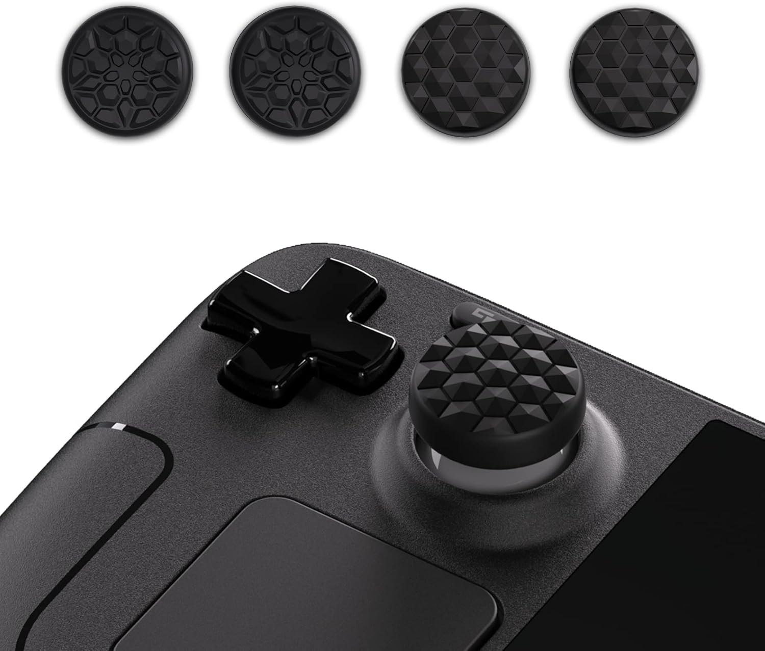 Капачки за джойстик PlayVital за LCD дисплей на Steam Deck, капачки за джойстици за PS Portal Remote Player, защитни капачки, аксесоари за OLED контролер на Steam Deck (дизайн с диамантено зърно и пукнатини, черен)