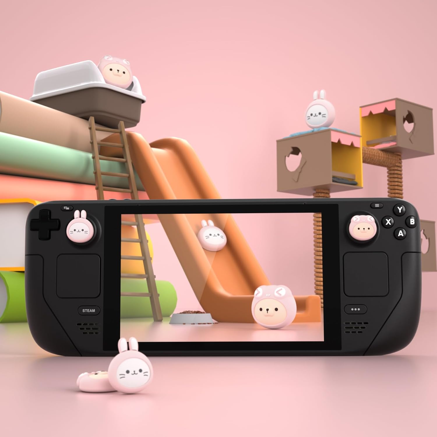 Капачки за джойстик PlayVital за LCD контролер на Steam Deck, капачки за джойстици за PS Portal Remote Player, аксесоари за защитни капачки, капачки за аналогови джойстици за OLED контролер на Steam Deck (Cosplay Kitten)