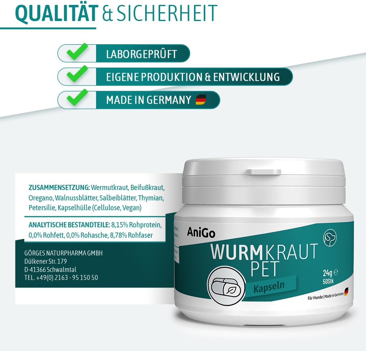 • НАТУРАЛНА СИЛА: PET капсулите AniGo Wormwood съдържат ценни горчиви вещества (особено абсентин, артабсин, анабсинтин) и етерични масла (цинеол, сабинен, туйон в следи от)