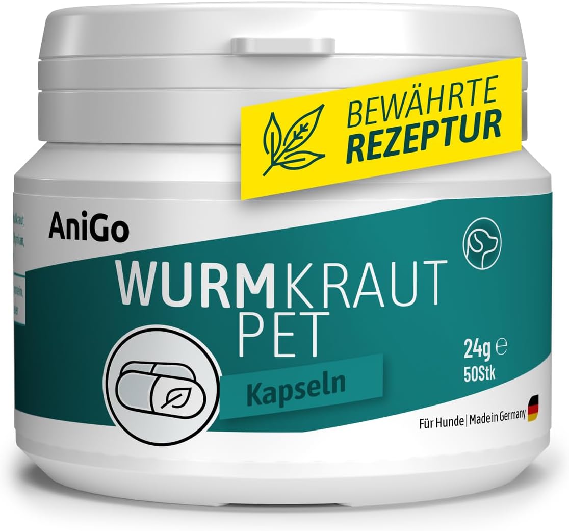 Капсули AniGo Wormwood PET 50 броя – за кучета, с истински пелин (Artemisia absinthium) в растителна формула с рецепта, подходяща за кучета от всички породи