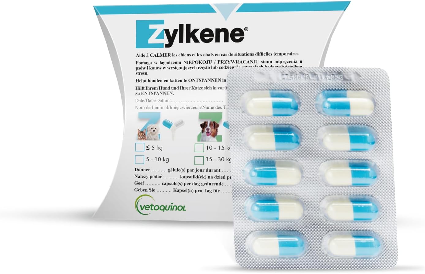 Капсулите Zylkene се предлагат в три варианта: