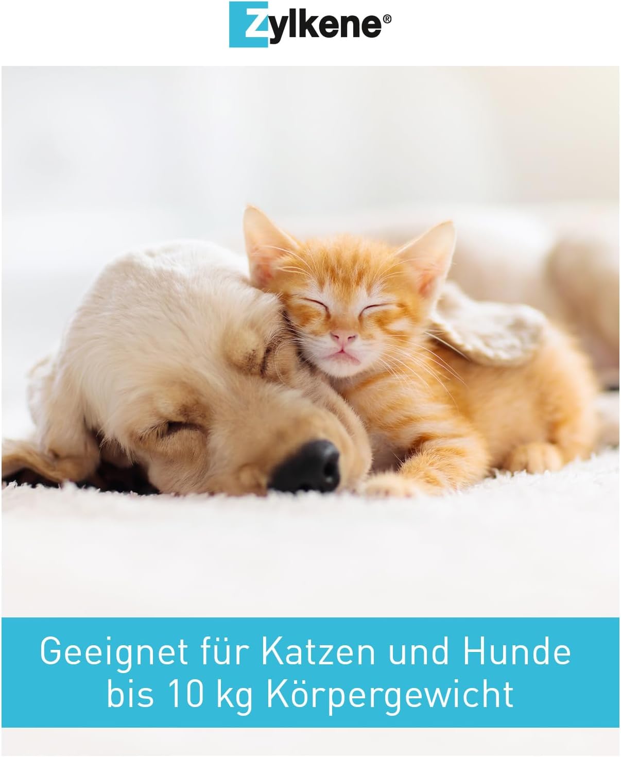 Zylkene® ≤ 10 kg: Maltodextrin, Kasein (Trypsin-hydrolysiertes Rinderkasein) 29,4 %, Magnesiumstearat. Analytische Bestandteile: Zylkene® ≤ 10 kg: Rohprotein 21,5 %, Feuchtigkeit 8 %, Rohasche 4,5 %, Rohfett 2 %, Rohfaser 1 %