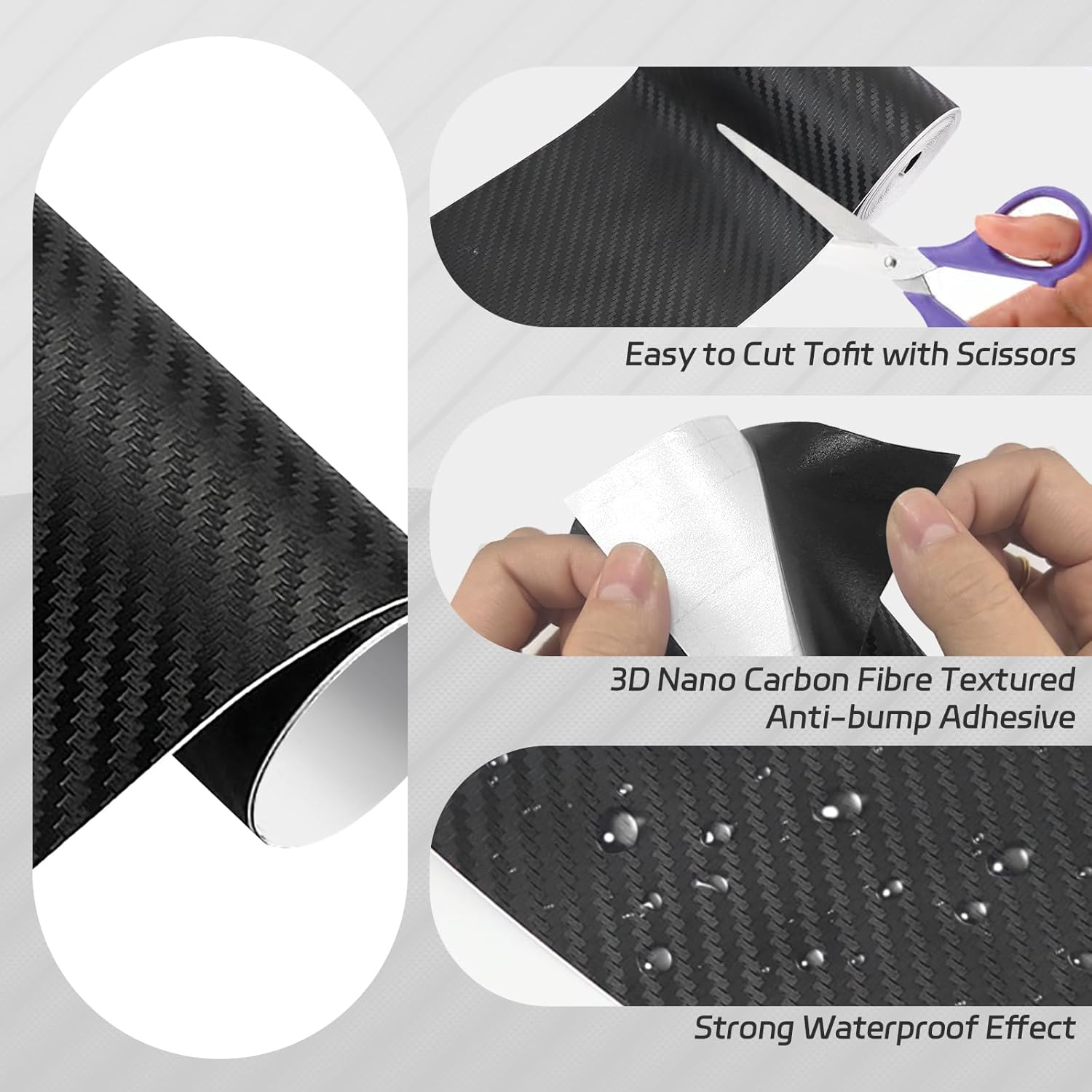 • Лесна употреба: защитното фолио за боя от карбоново фолио с ширина 10 см и обща дължина 10 м е лесно за рязане и монтаж от потребителя, за да отговори на изискванията на различните модели. Черните автомобилни фолиа са самозалепващи и можете да ги монтирате сами, без да са необходими инструменти или лепило.