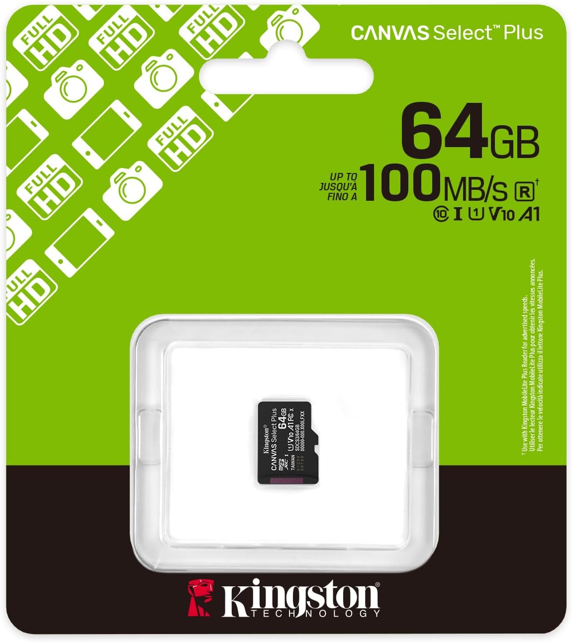 • MicroSD картата Kingston Canvas Select Plus е съвместима с устройства с Android и има подобрена производителност от клас A1.