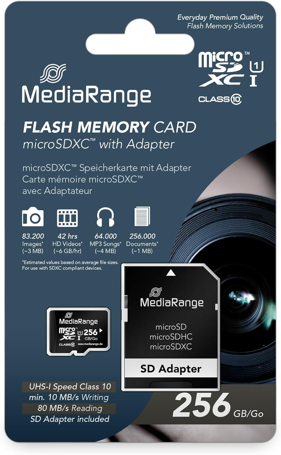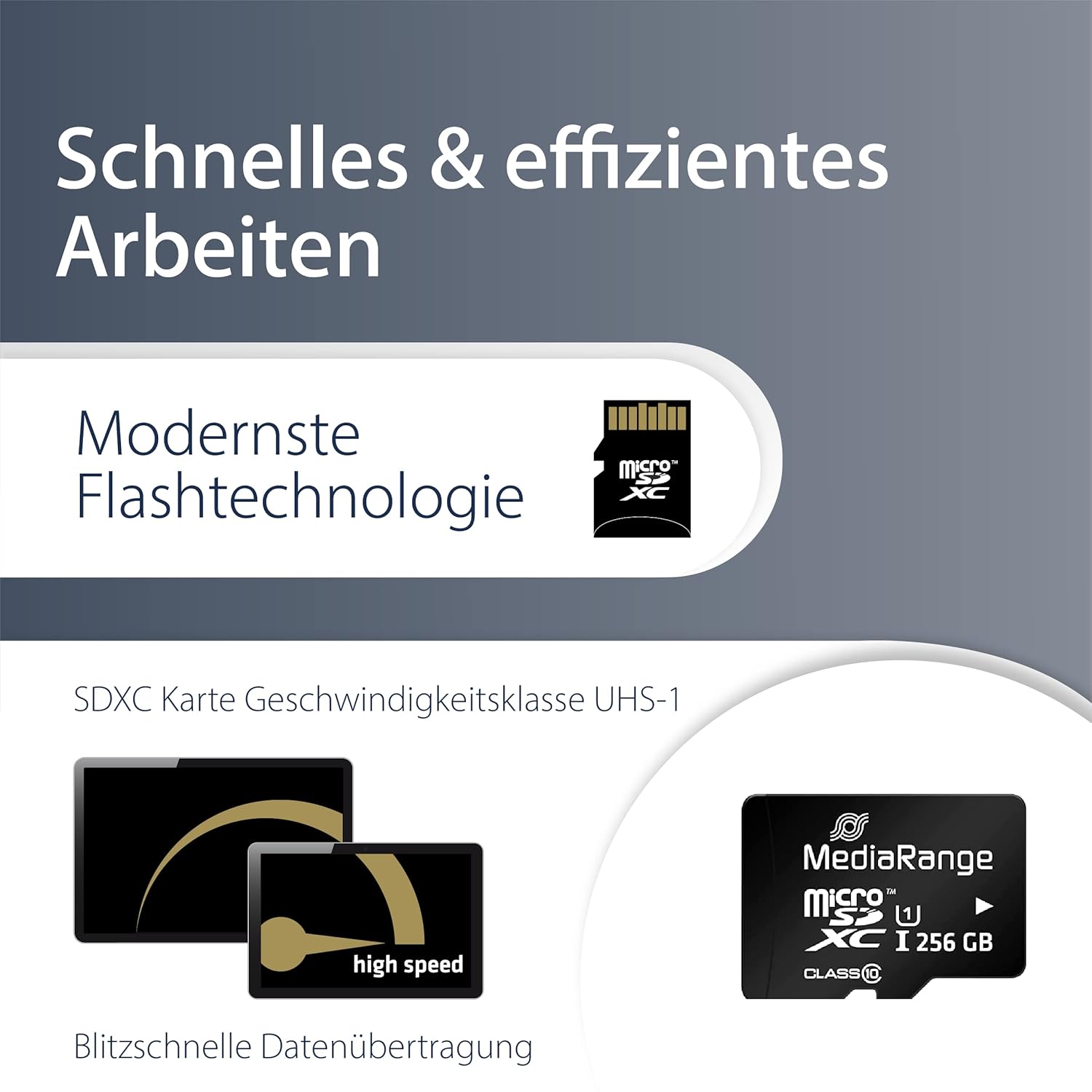 Die microSDHC Karte unterstützt ein schnelles und effizientes Arbeiten und überzeugt genau dann wenn Geschwindigkeit eine wichtige Anforderung für Ihre Arbeit darstellt. Die Geschwindigkeitsklasse 10 gewährleistet eine leistungsstarke Performance bei großem Workload. Mit einer Lesegeschwindigkeit von bis zu 15 MB/s und einer Top Schreibgeschwindigkeit von bis zu 10 MB/s hat lästiges warten ein Ende! Die microSDHC Speicherkarten von MediaRange sind zu sämtlichen SDHC- und SDXC-fähigen Geräten kompatibel, sofort einsatzbereit und ermöglichen eine sichere, langanhaltende Archivierungszeit bei minimalem Stromverbrauch.