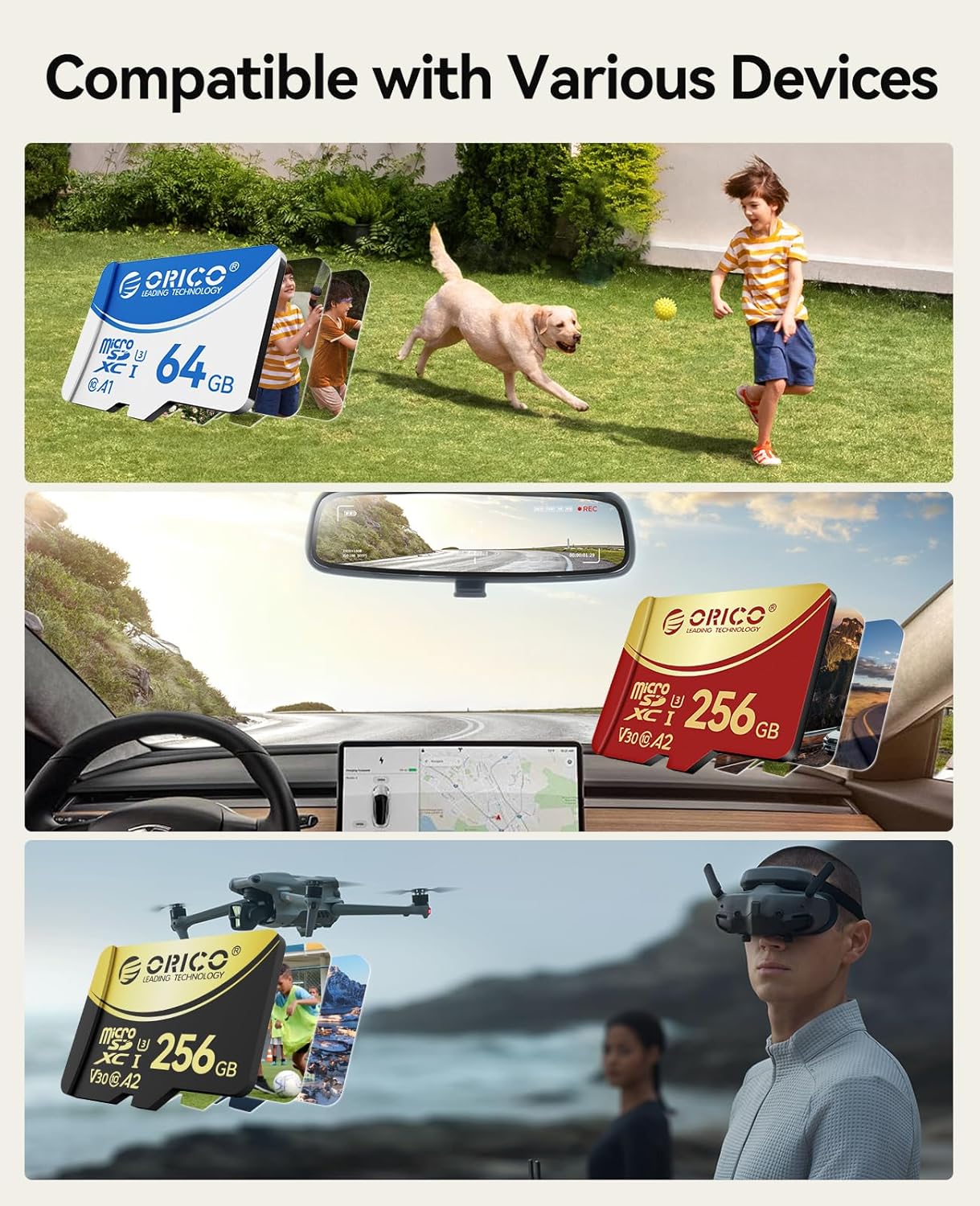 • ИДЕАЛНА ЗА ПРИКЛЮЧЕНСКИ СПОРТОВЕ Нашата Micro SD карта е специално разработена за екшън камери, което я прави идеална за заснемане на моменти с високо натоварване по време на дейности като ски, спускане с колело и колоездене.