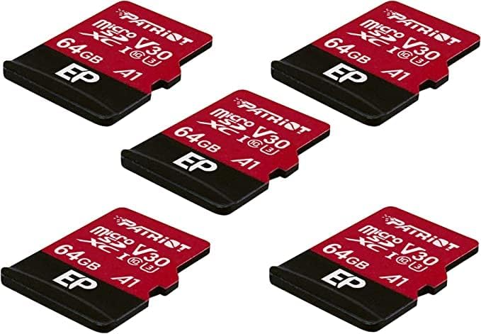 Карта памет Patriot Memory 64GB A1 / V30 за Android телефони и таблети 4K видеозапис - пакет от 5