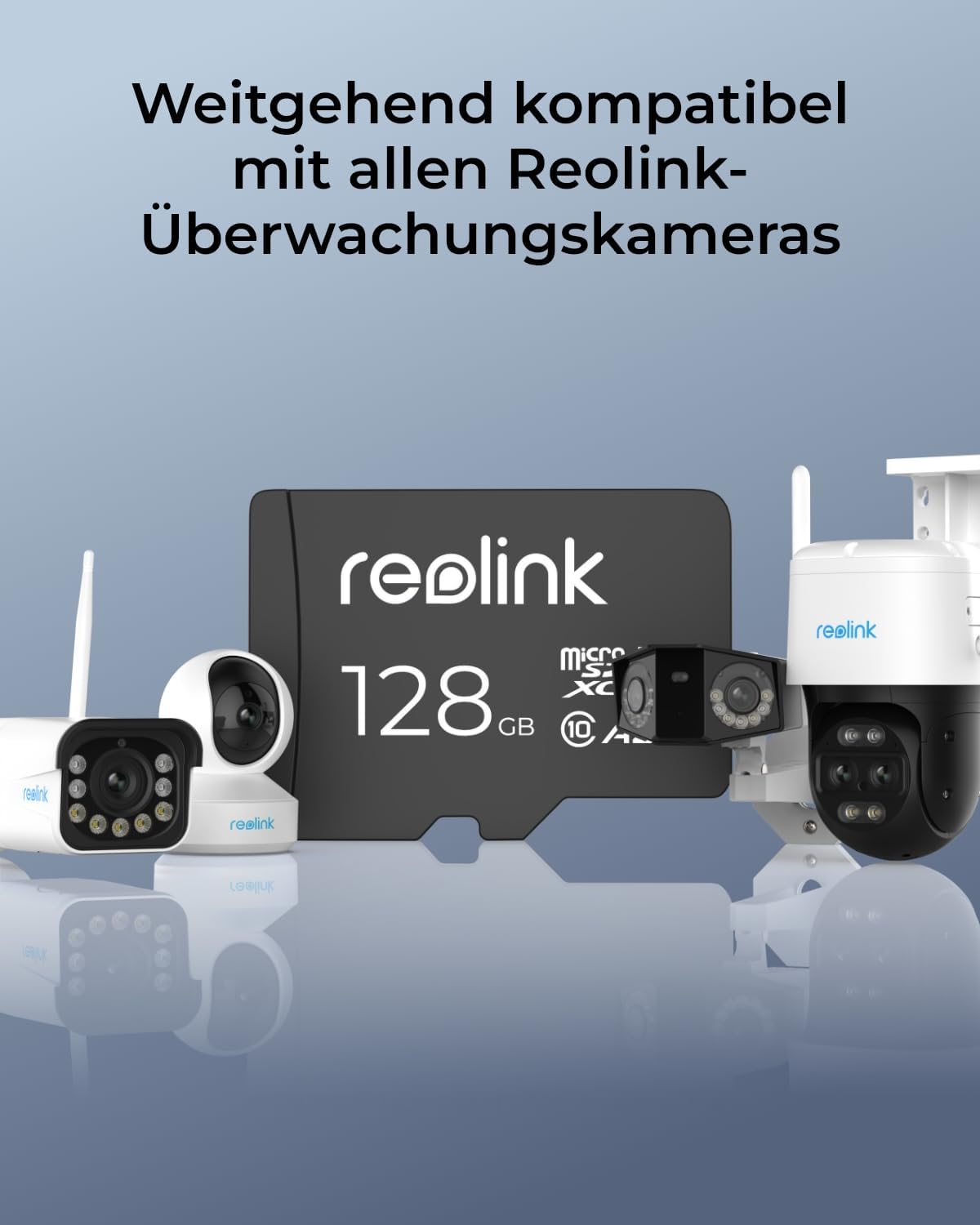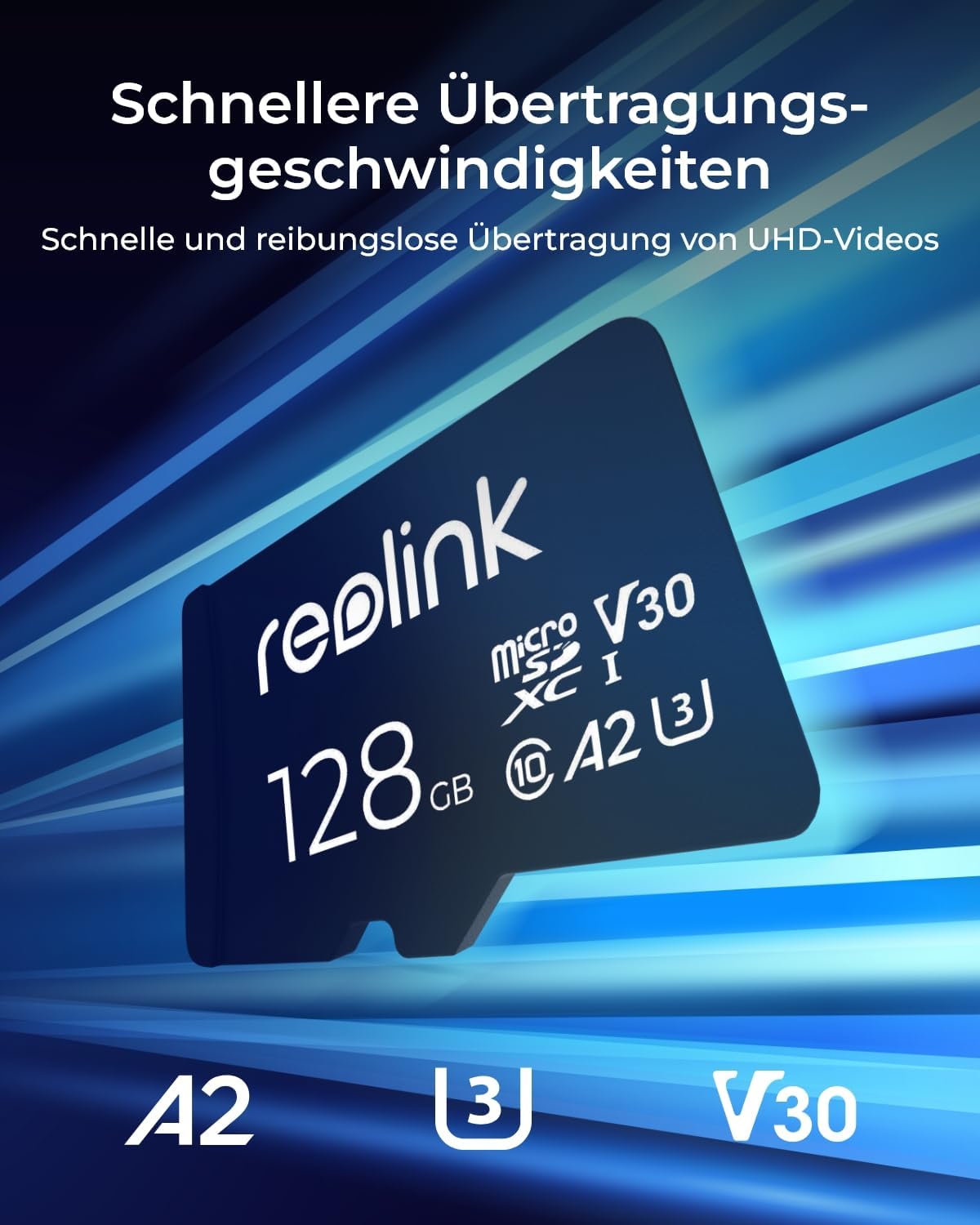 Карта памет Reolink 128GB microSDXC Class 10 A2 V30 U3 TF карта памет, съвместима с охранителни камери, също така за смартфони, екшън камери или дронове, SDHC до 100MB/s