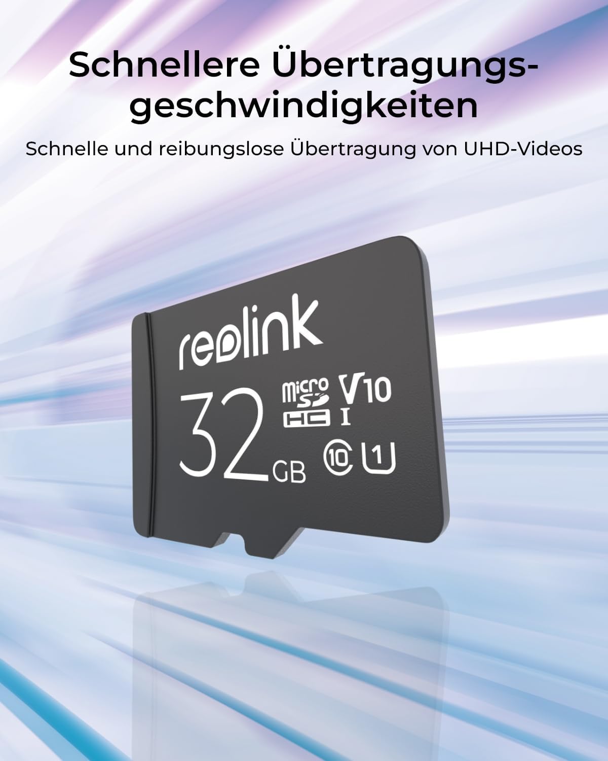 Карта памет Reolink 32GB MicroSDHC Class 10 U1 TF, съвместима с всички охранителни камери Reolink, също така за смартфони и таблети, QHD видеоклипове, до 100MB/s