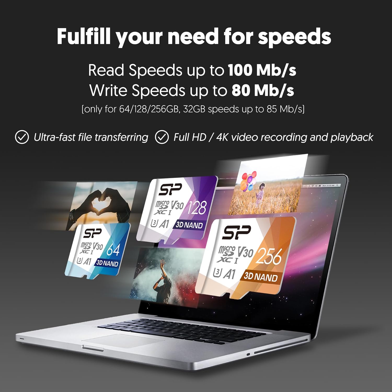 • Спецификациите на UHS-1 Class 10 позволяват бързи скорости на прехвърляне на файлове и запис на видео с пълна HD резолюция.