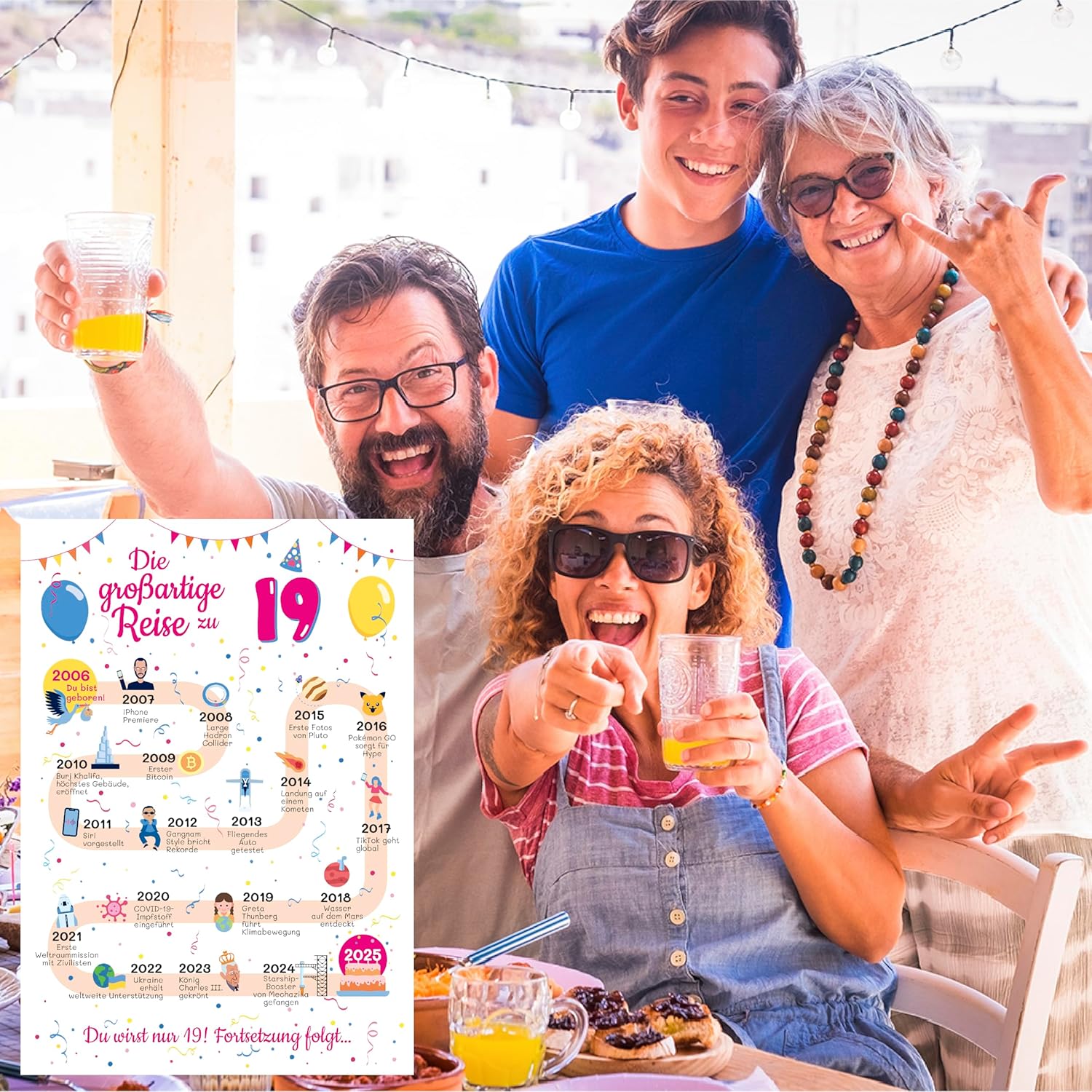 Картичка за 19-ти рожден ден за момиче - Подарък за 19-ти рожден ден за момче и момиче - Украса за рожден ден 19 години - Картичка 2006 Подарък за рожден ден - Украса за рожден ден 19 подаръка