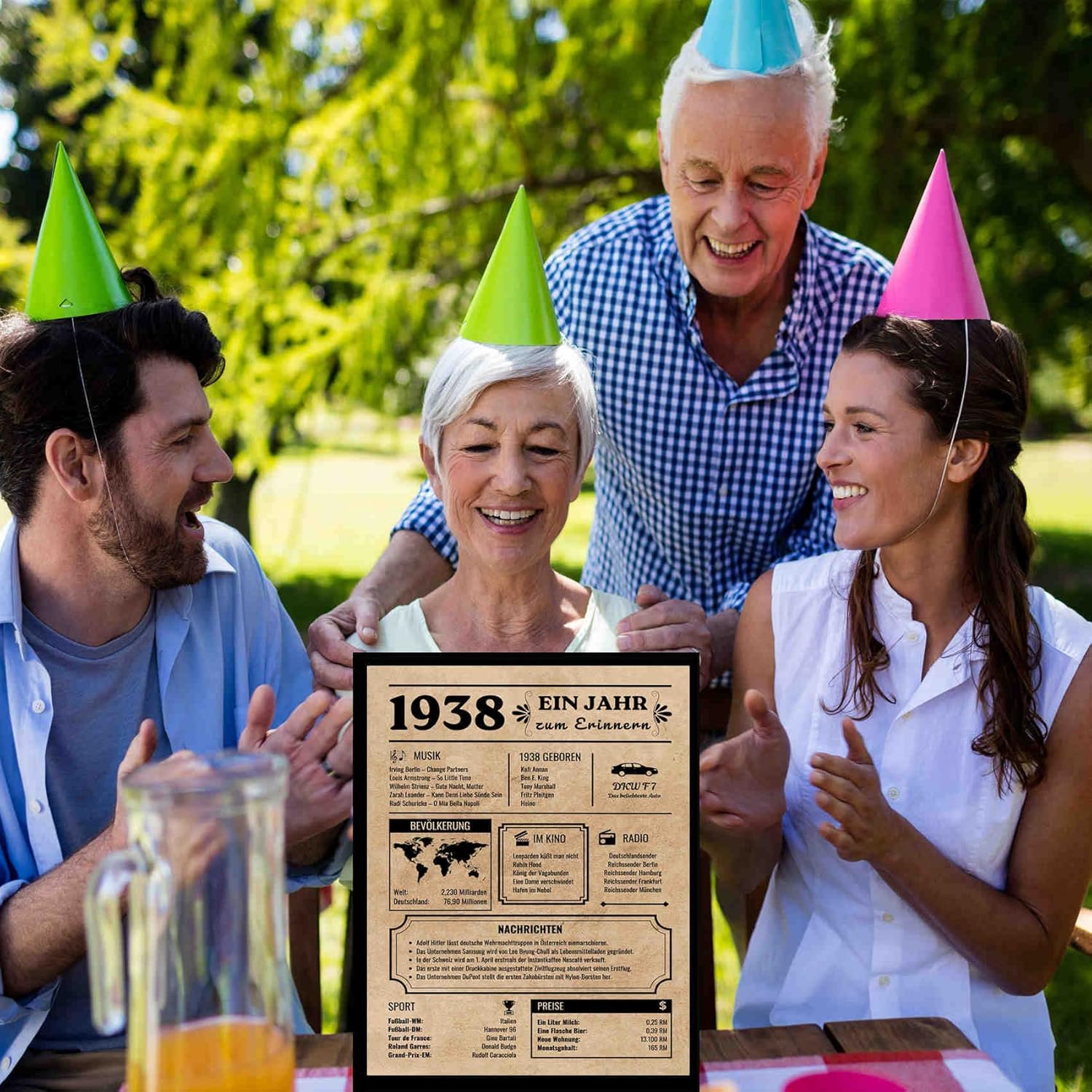 Картичка за рожден ден за родени през 1938 г., украса за рожден ден, подарък за рожден ден, винтидж плакат на немски език, за жени и мъже
