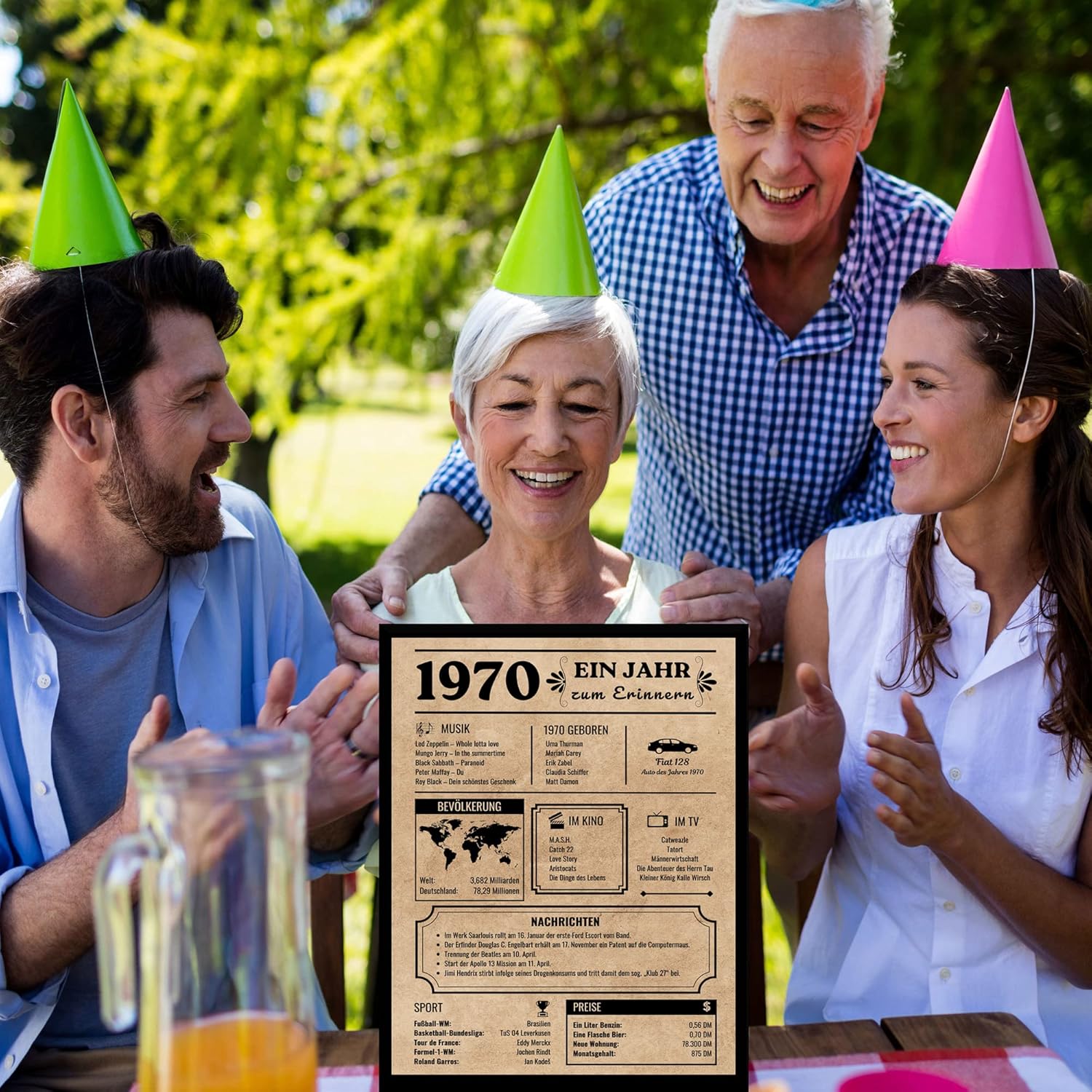 Картичка за рожден ден за родени през 1970 г., украса за рожден ден, подарък за рожден ден, винтидж плакат на немски език, за жени и мъже