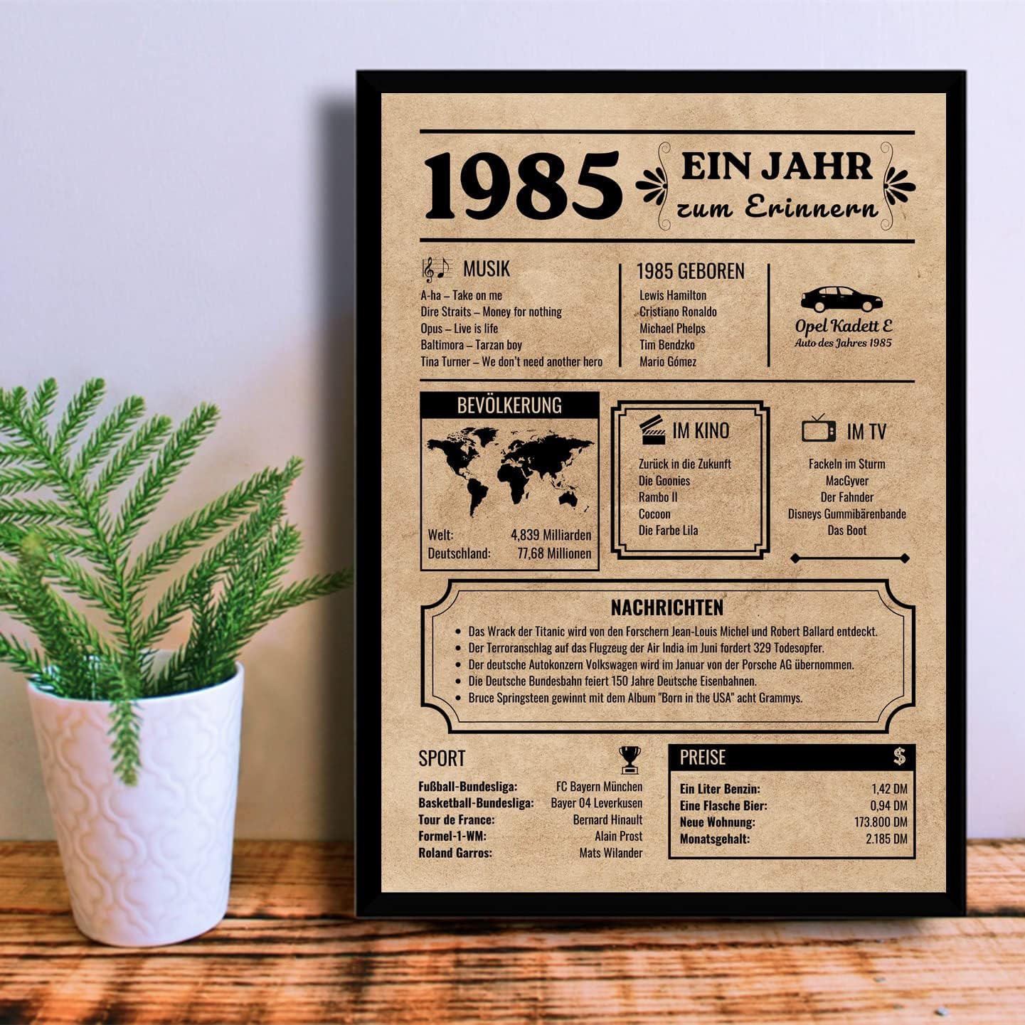 Картичка за рожден ден за родени през 1985 г., украса за рожден ден, подарък за рожден ден, винтидж плакат на немски език, за жени и мъже
