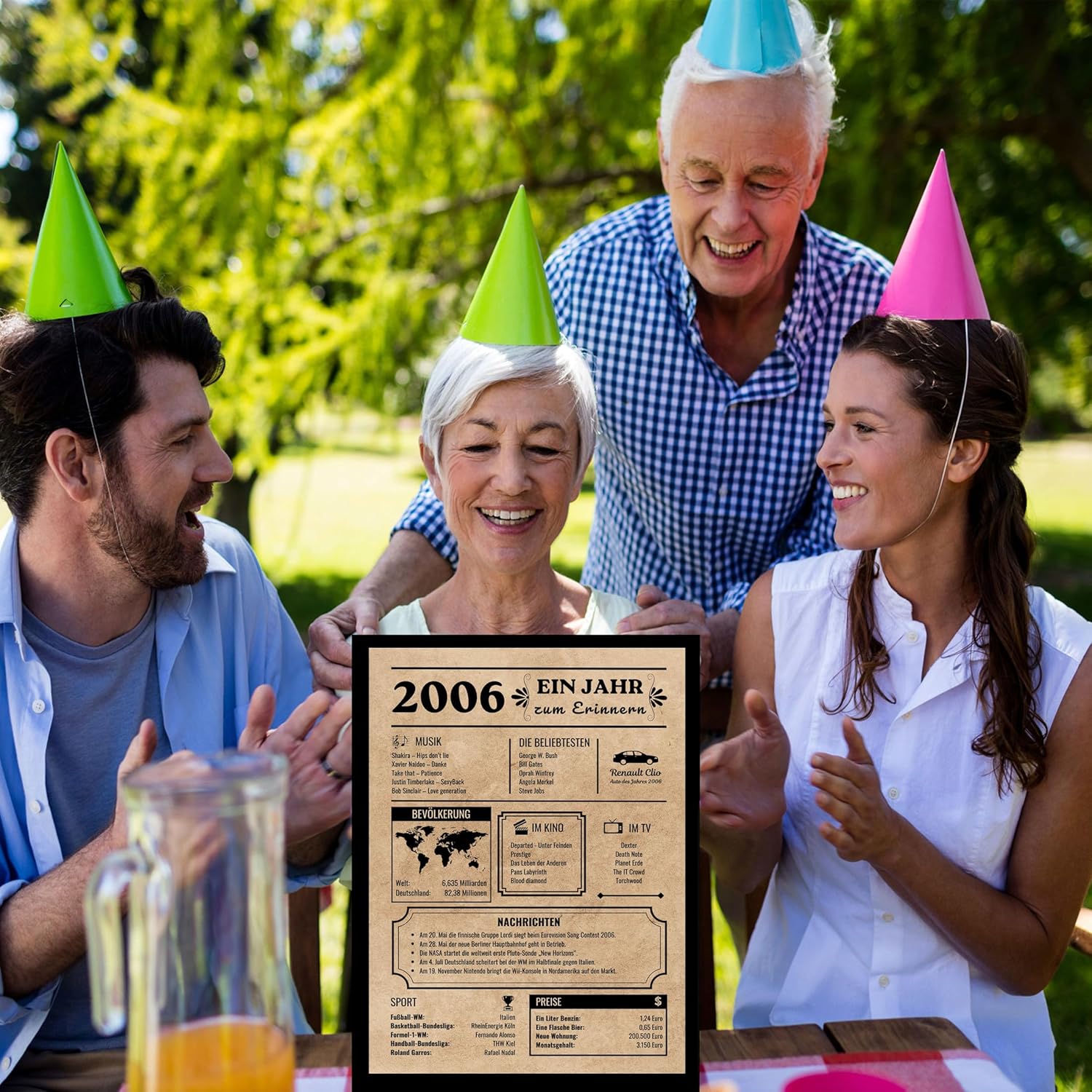 Картичка за рожден ден за родени през 2006 г., украса за рожден ден, подарък за рожден ден, винтидж плакат на немски език, за жени и мъже