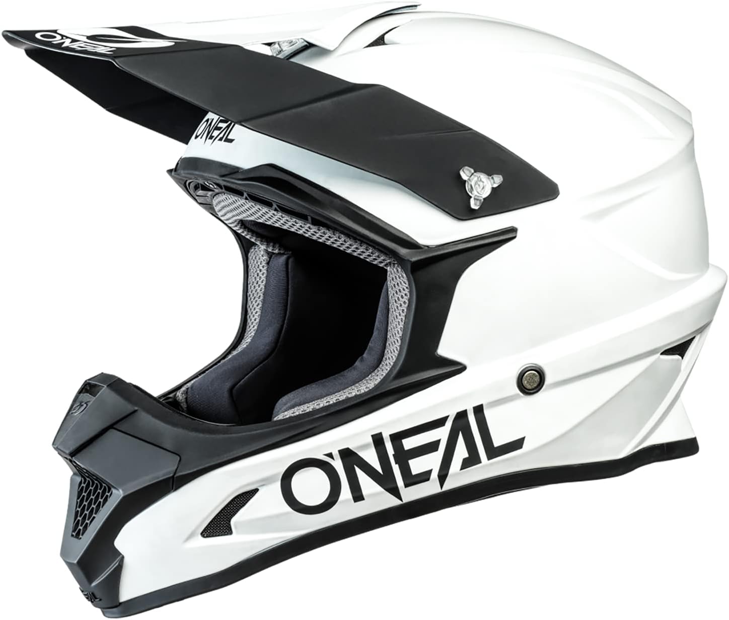 Каска за мотокрос O'NEAL 1SRS, Размер XL (61 - 62см обиколка), Вентилационни отвори, Матов финиш, Бял