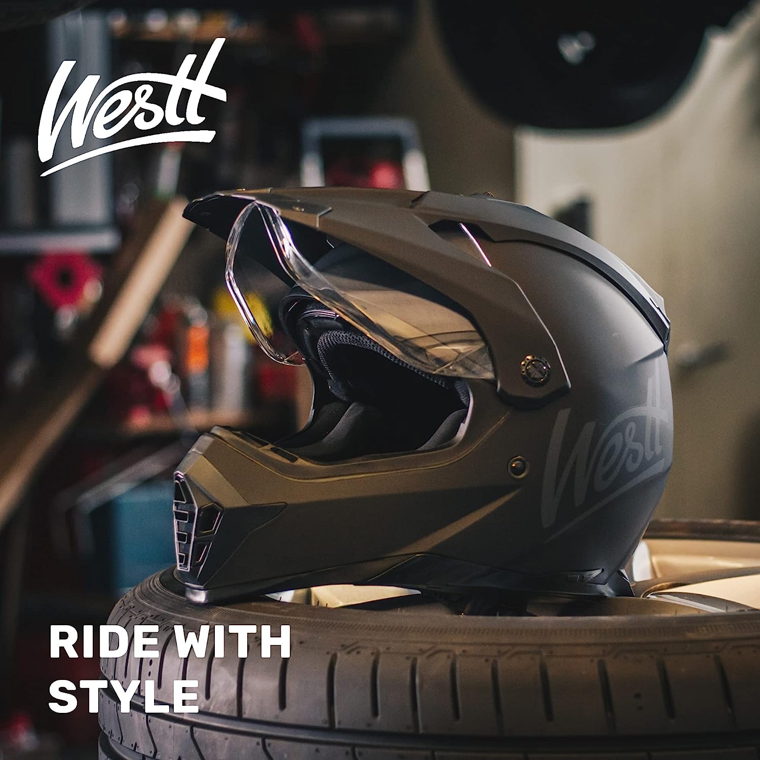 Каска за мотокрос Westt Cross X, Размер M (57 - 58см обиколка), Вграден визьор, Защита от замъгляване, Проветрима, Черна