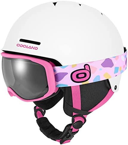 Каска за ски с очила Odoland, 49 - 53 см, UV400 защита на очилата, Бели/Розови