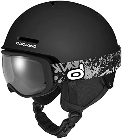 Каска за ски с очила Odoland, 49 - 53 см, UV400 защита на очилата, Черни